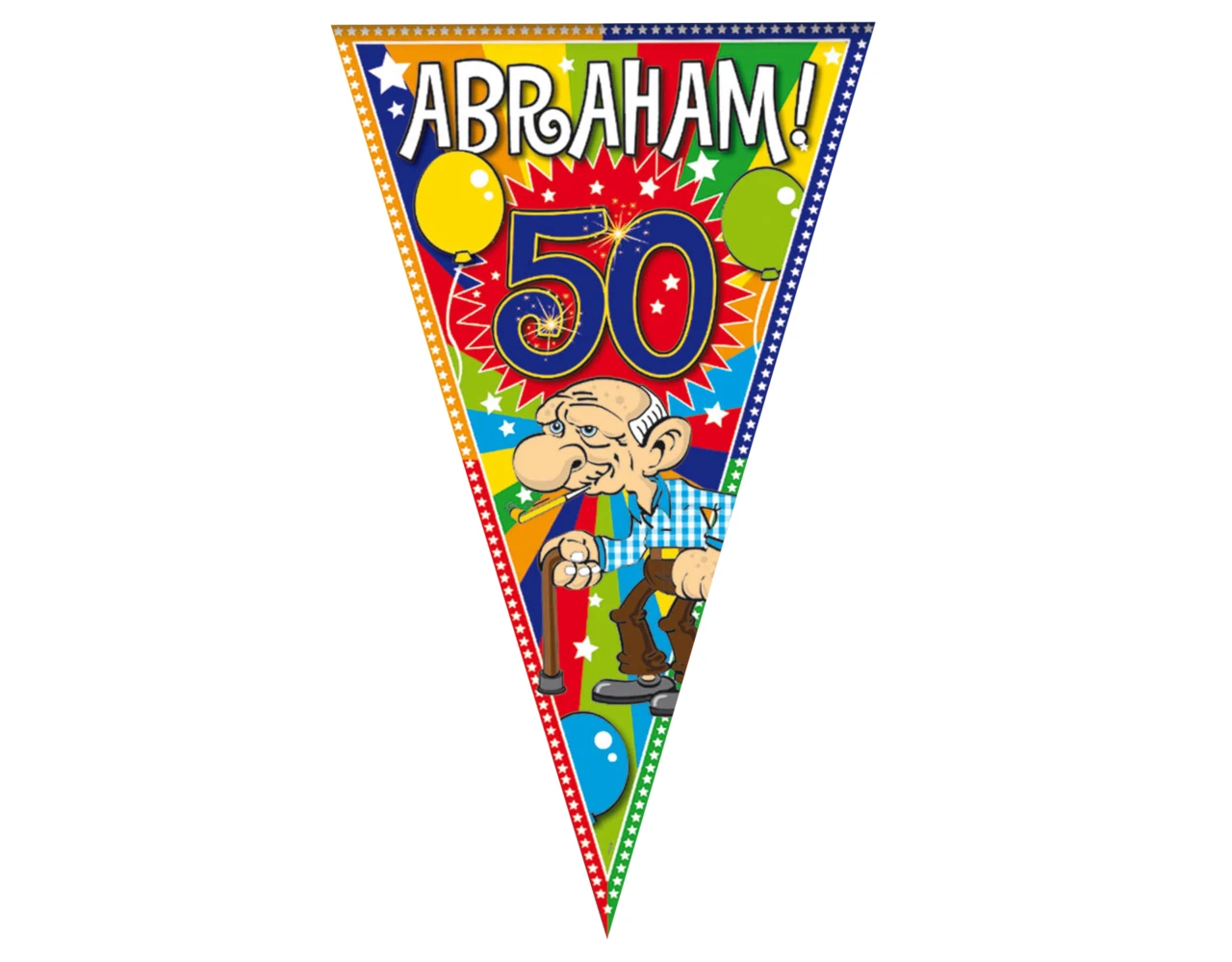50 Jaar Abraham Knalfeest Mega Vlag – 90x150cm. Inhoud: 1 vlag. Kleur: Meerkleurig. Bijvoorbeeld te gebruiken tijdens de volgende feestgelegenheid/feestgelegenheden: Themafeest, Verjaardag. Afmetingen van dit artikel: 90x150cm. Dit artikel is gemaakt van stof.