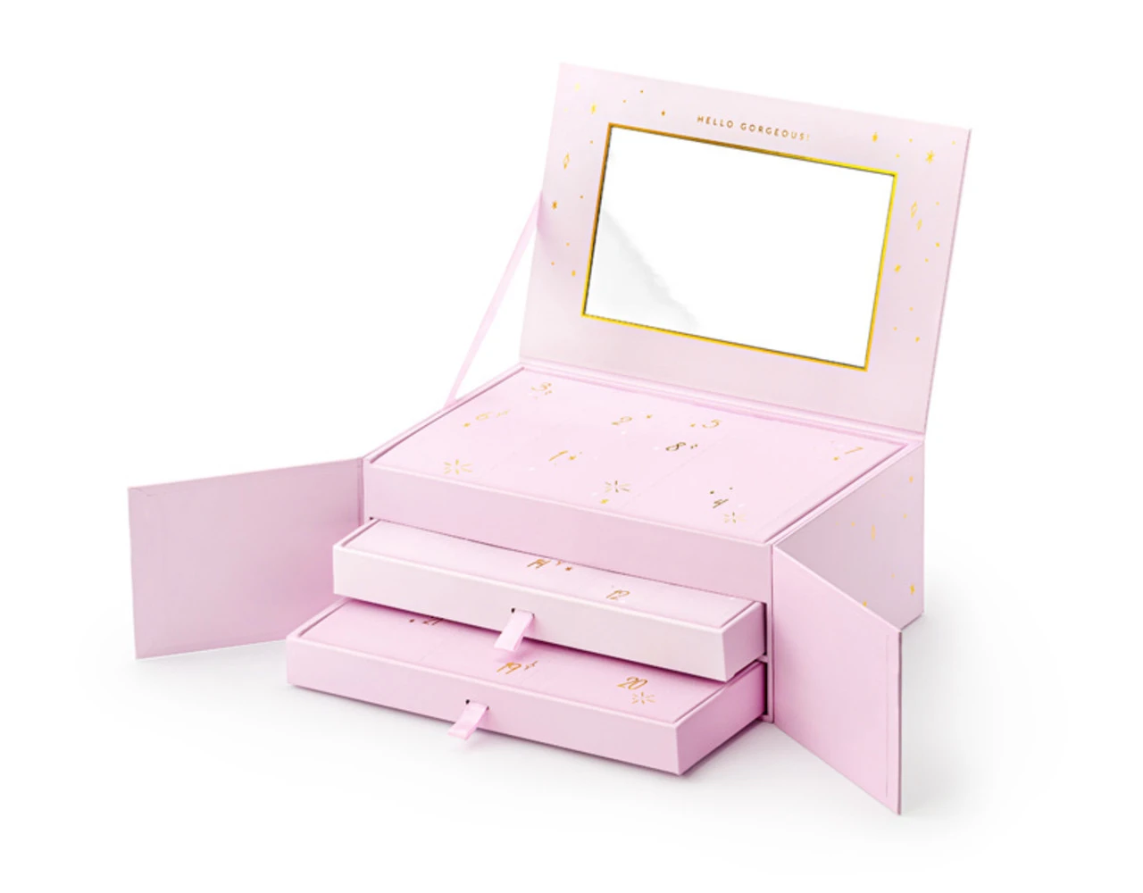 Adventskalender met vulling, set bevat etui en 24 vulelementen, afmeting etui ca. 23 x 15 x 9,5 cm.