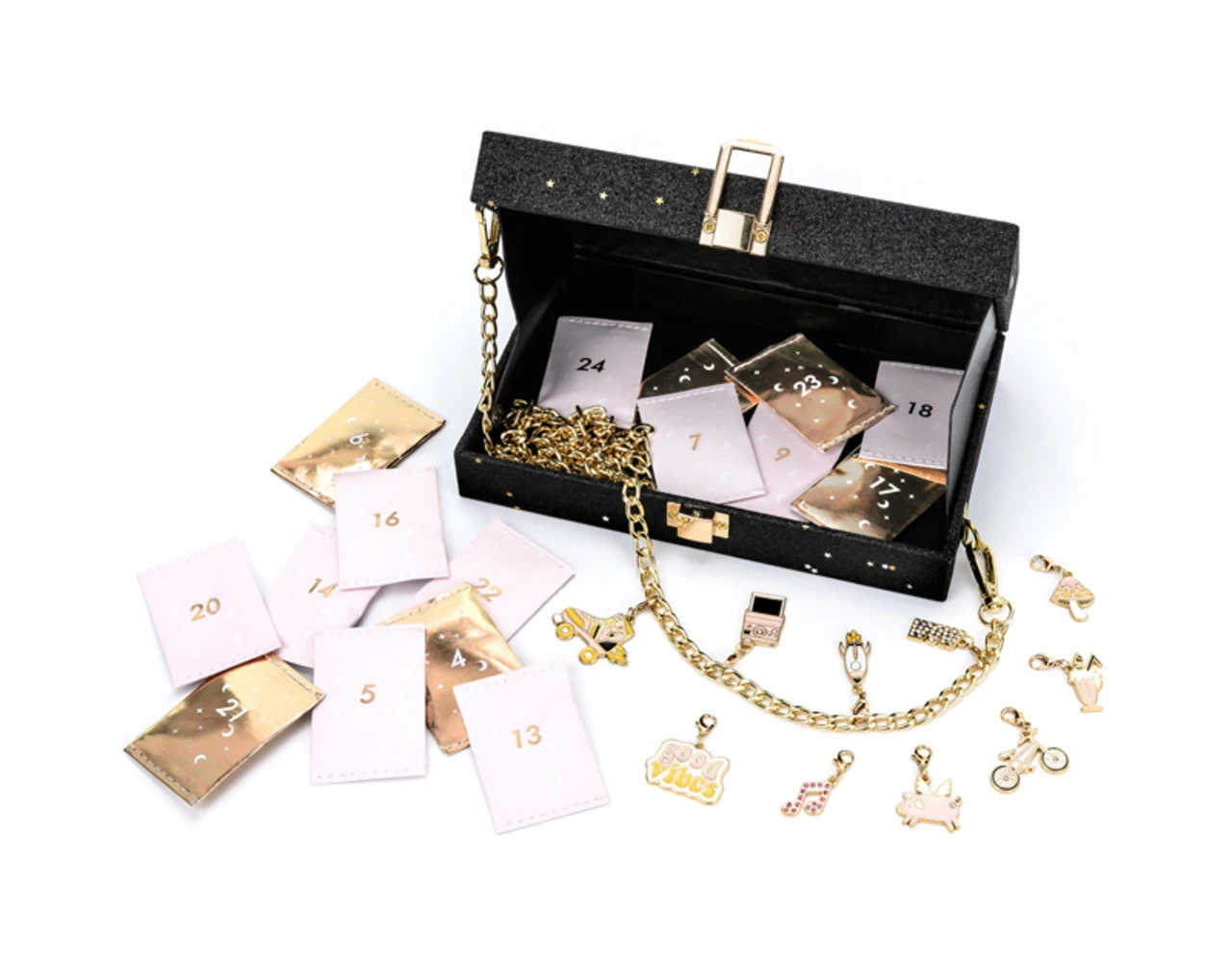 Adventskalender met vulling, set bestaat uit een tasje en 23 vulelementen in papieren zakjes, afmeting tasje ca. 19 x 12 x 5 cm.
