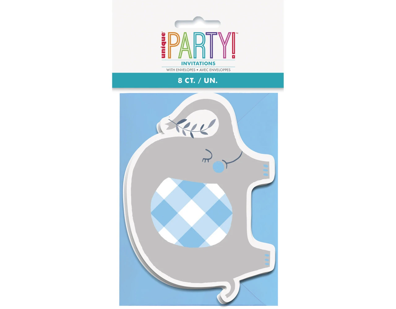 Verpakkingsinhoud: Baby Olifant Uitnodigingen Blauw 8st