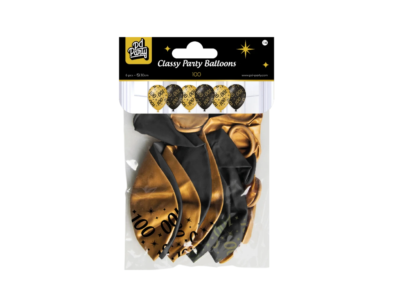 Ballonnen 100 Jaar Goud Zwart 30cm 6st