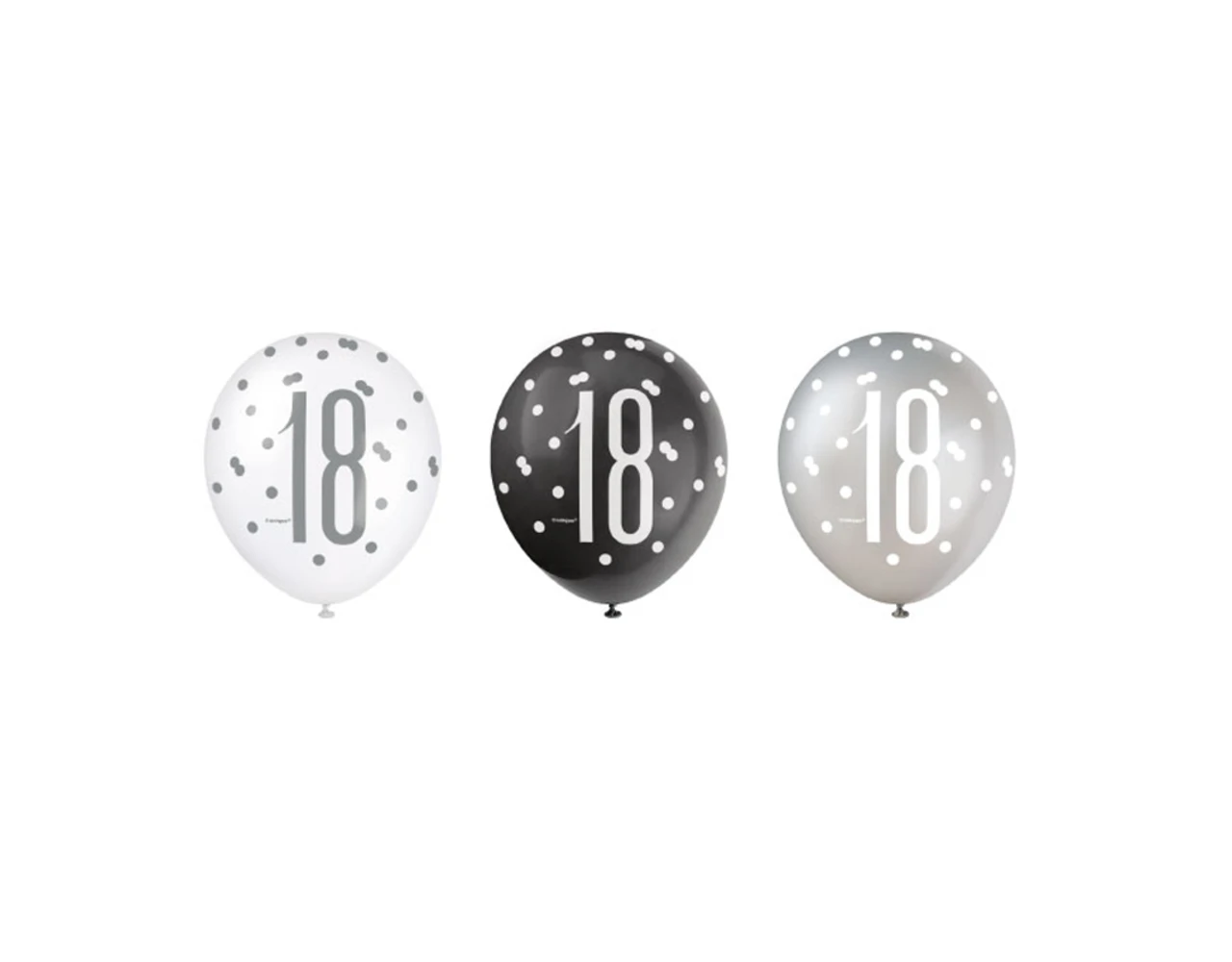 Verpakkingsinhoud: Ballonnen 18 Jaar Stippen Zwart 30cm 6st