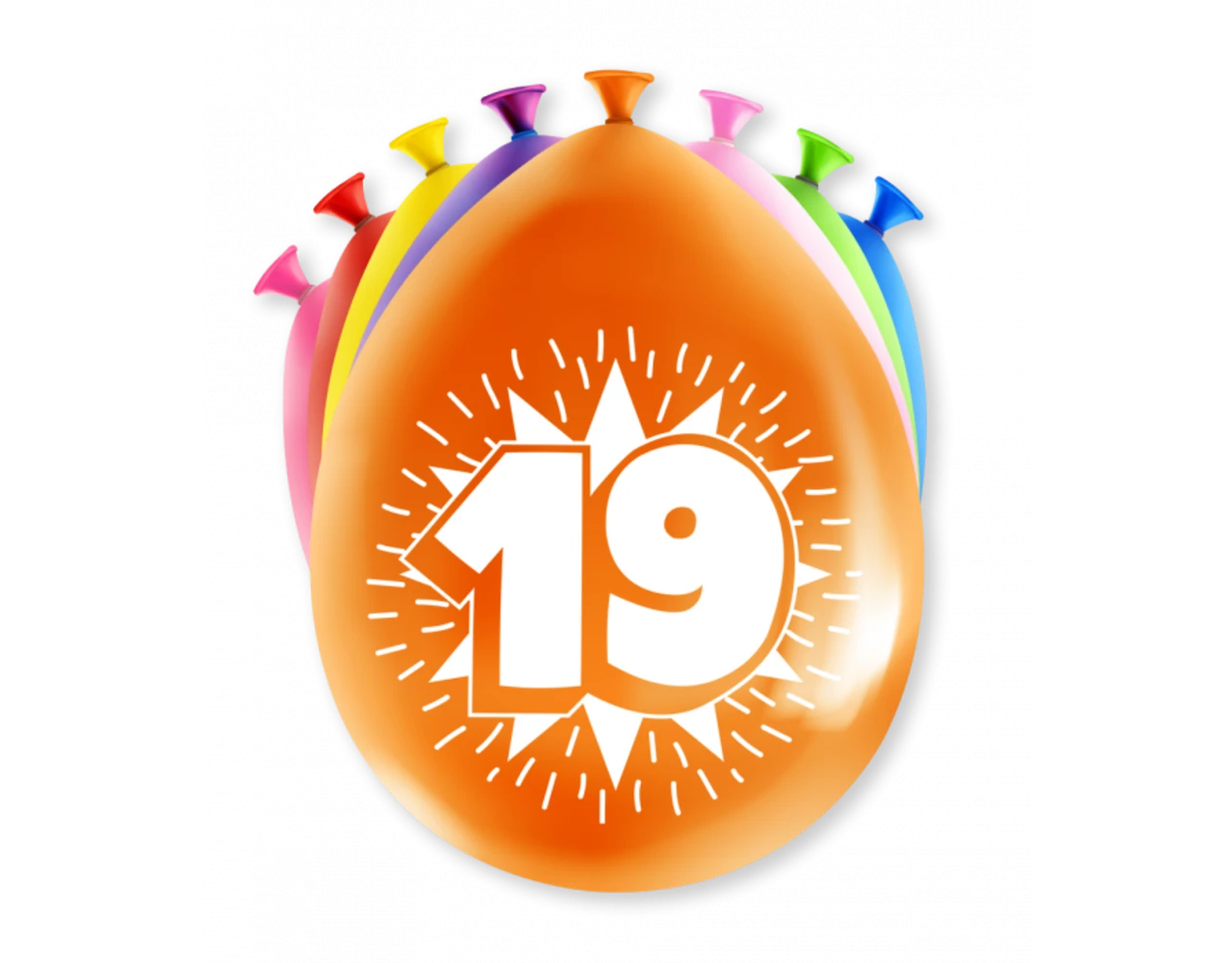 Ballonnen 19 Jaar Meerkleurig 30cm 8st