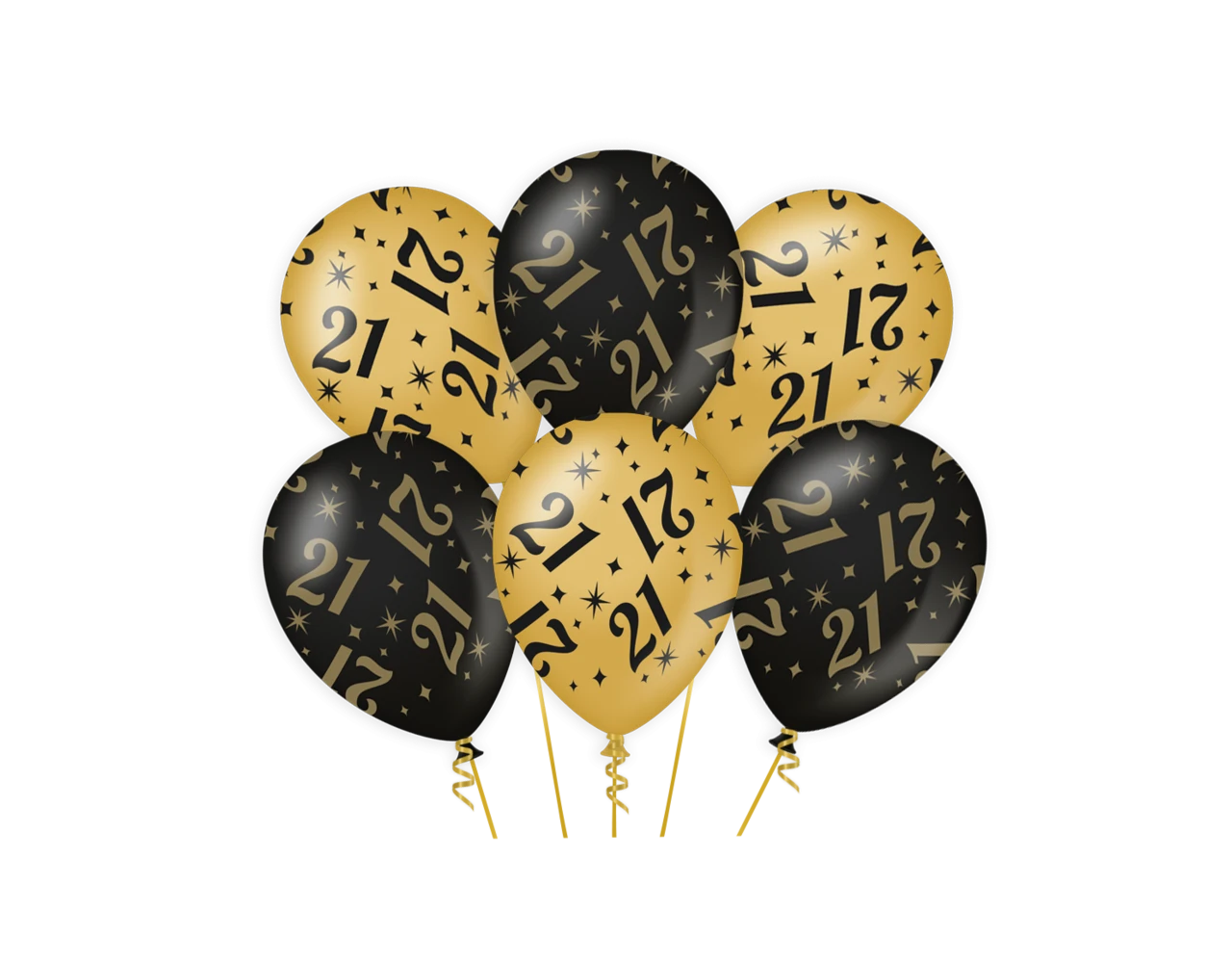 Ballonnen 21 Jaar Goud Zwart 30cm 6st