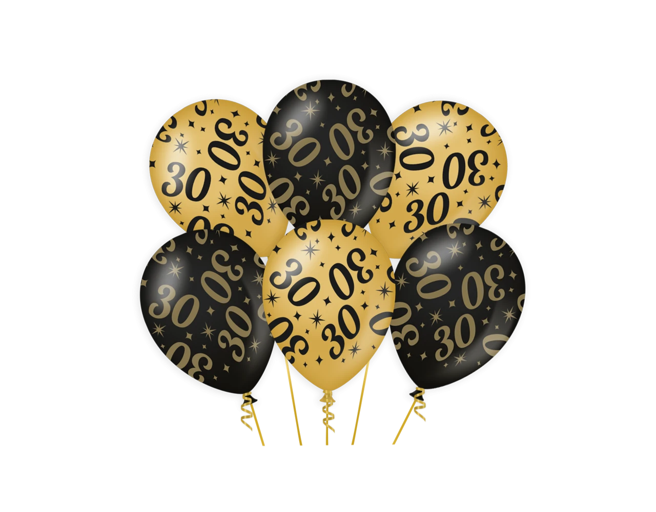 Ballonnen 30 Jaar Goud Zwart 30cm 6st