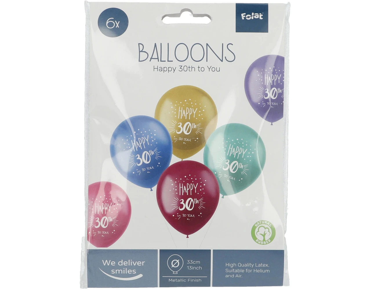 Ballonnen Shimmer 30 Jaar Meerkleurig 33cm – 6 stuks. Inhoud: 6 latex ballonnen. Kleur: Meerkleurig. Bijvoorbeeld te gebruiken tijdens de volgende feestgelegenheid/feestgelegenheden: Verjaardag en Jubileum. Elke ballon is 13 inch/33 cm. Het artikel is gemaakt van latex.