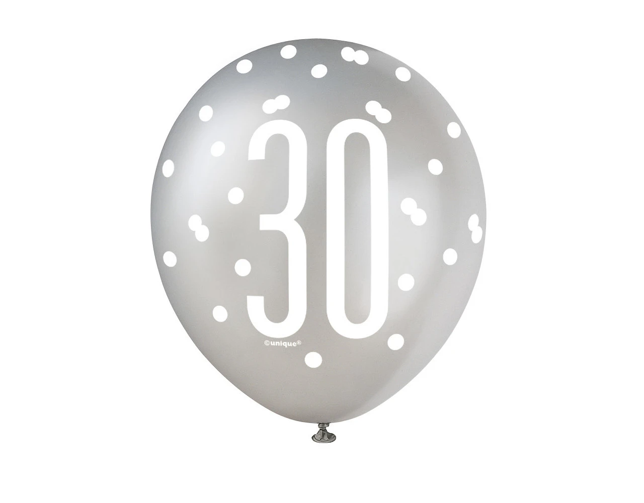 Verpakkingsinhoud: Ballonnen 30 Jaar Stippen Zwart 30cm 6st