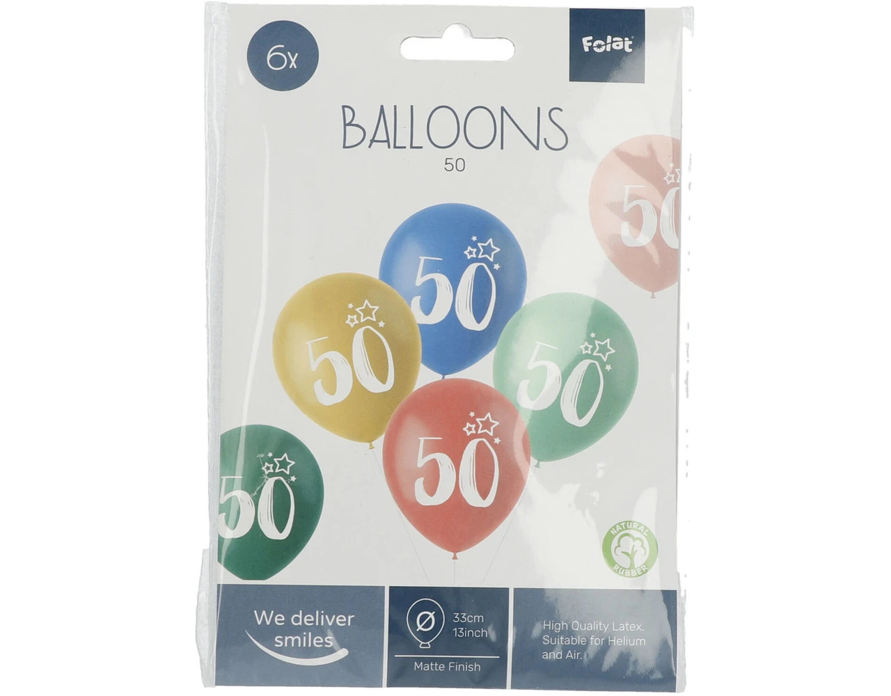 Ballonnen Retro 50 Jaar Meerkleurig 33cm – 6 stuks. Inhoud: 6 latex ballonnen. Kleur: Meerkleurig. Bijvoorbeeld te gebruiken tijdens de volgende feestgelegenheid/feestgelegenheden: Verjaardag en Jubileum. Elke ballon is 13 inch/33 cm. Het artikel is gemaakt van latex.