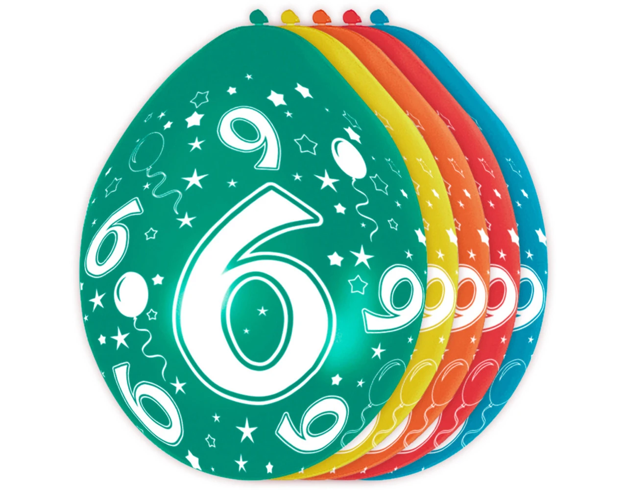 6 Jaar Verjaardag Ballonnen 5 stuks. Inhoud: 5 latex ballonnen. Bijvoorbeeld te gebruiken tijdens de volgende feestgelegenheid/feestgelegenheden: verjaardag, kinderfeestje, jubileum. Elke ballon is 12 inch/30 cm. Het artikel is gemaakt van latex.