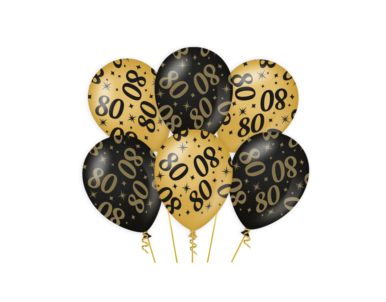 Ballonnen 80 Jaar Goud Zwart 30cm 6st