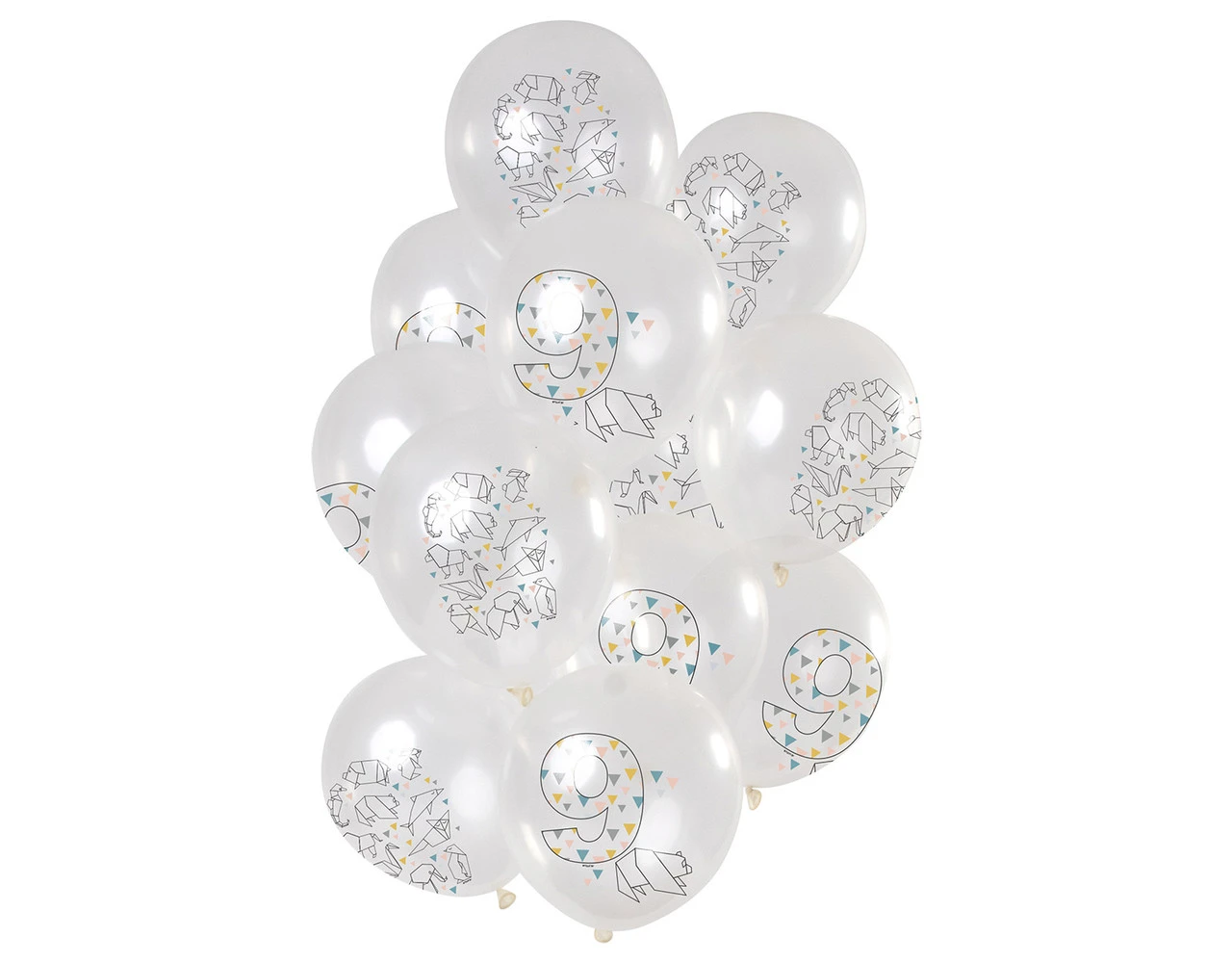 Ballonnen Origami 9 Jaar 30cm – 12 stuks. Inhoud: 12 latex ballonnen. Kleur: Transparant. Bijvoorbeeld te gebruiken tijdens de volgende feestgelegenheid/feestgelegenheden: Kinderfeestje. Elke ballon is 12 inch/30 cm. Het artikel is gemaakt van latex.