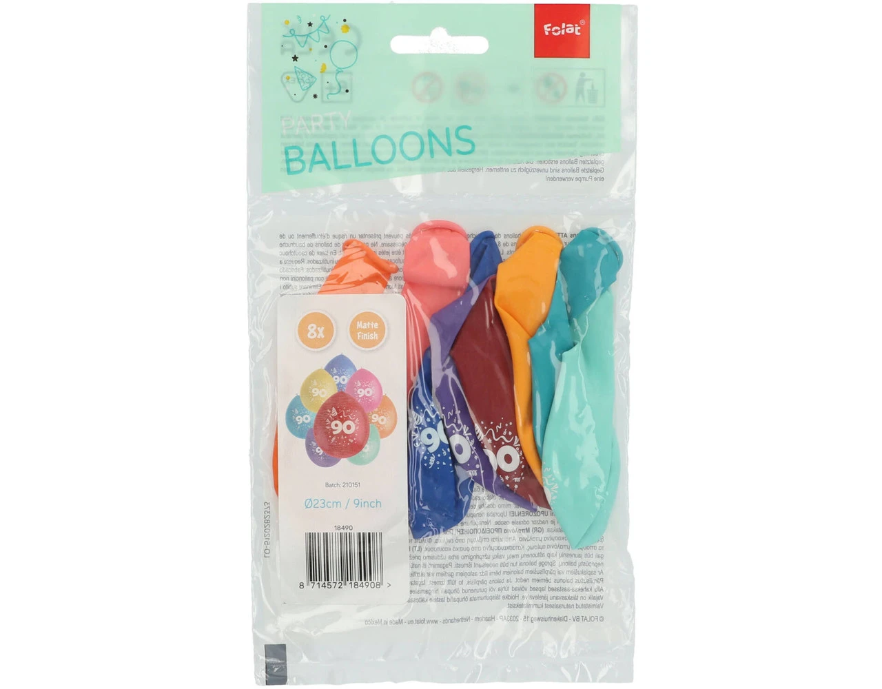 Ballonnen Color Pop 90 Jaar 23cm – 8 stuks. Inhoud: 8 latex ballonnen. Kleur: Meerkleurig. Bijvoorbeeld te gebruiken tijdens de volgende feestgelegenheid/feestgelegenheden: Verjaardag en Jubileum. Elke ballon is 9 inch/23 cm. Het artikel is gemaakt van latex.