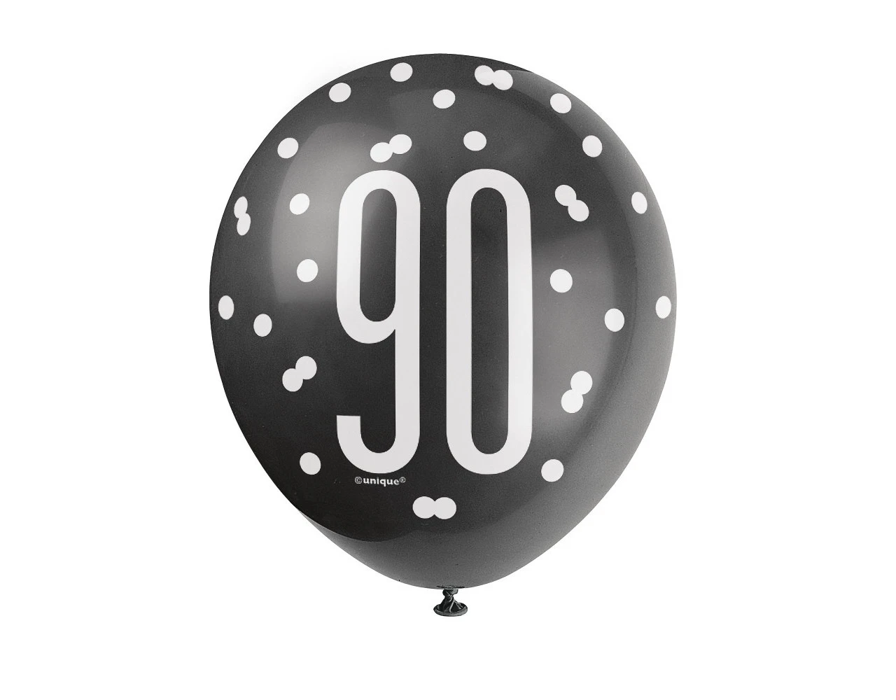 Verpakkingsinhoud: Ballonnen 90 Jaar Stippen Zwart 30cm 6st