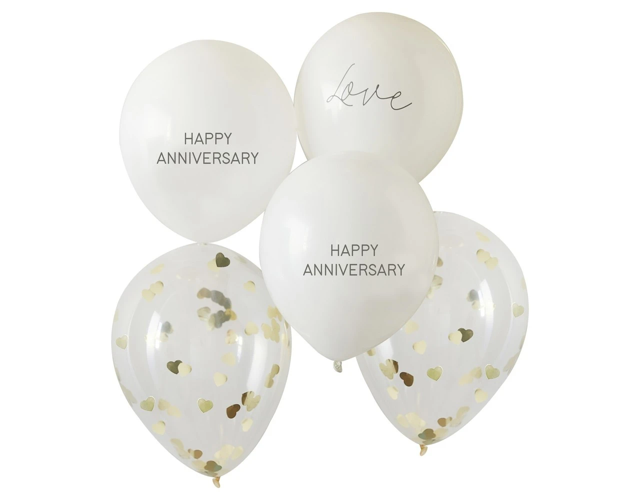 Creëer een blikvanger op uw jubileumfeesten met deze prachtige witte en gouden confetti ballonbundel – voeg een vleugje luxe toe!
