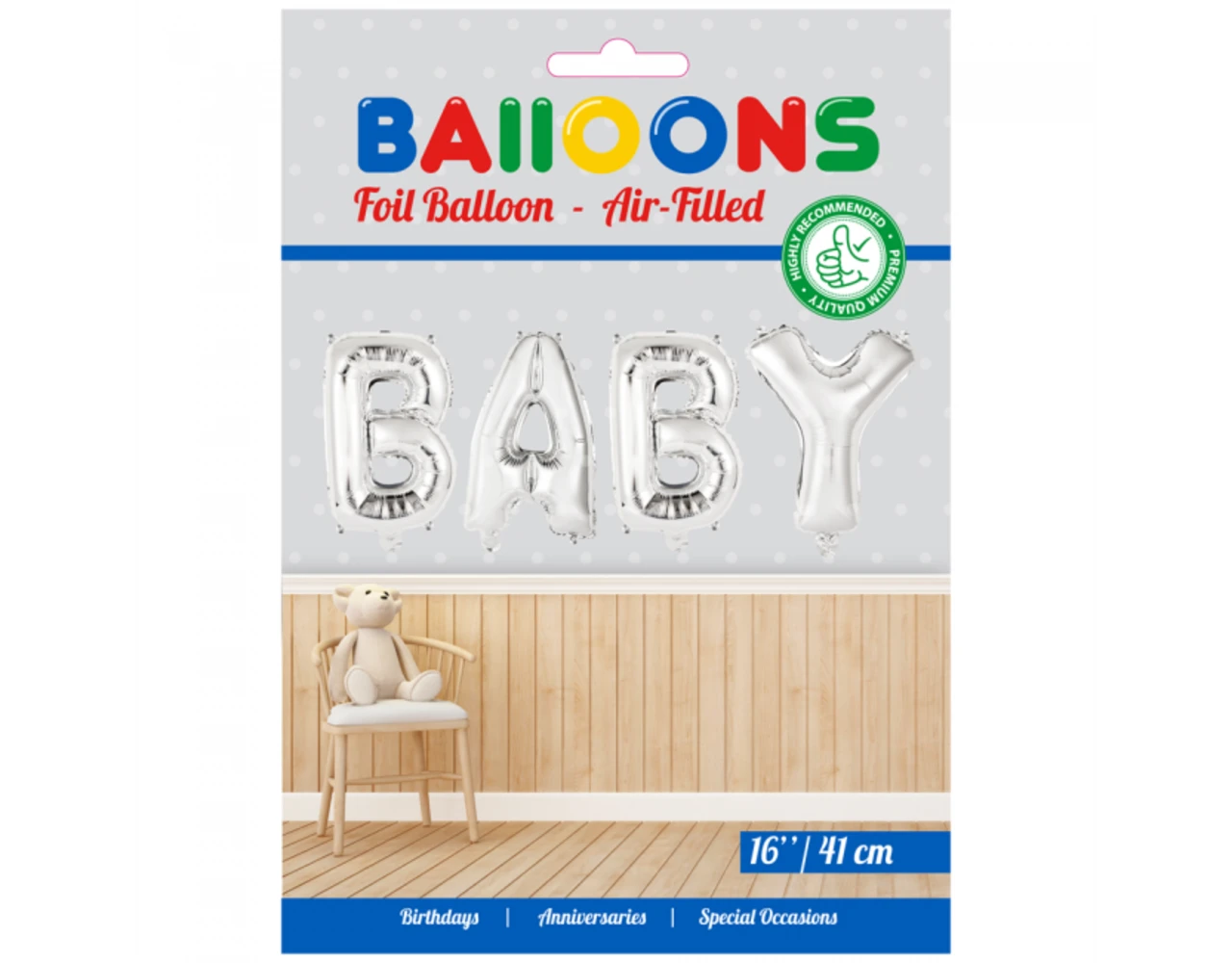 Verpakkingsinhoud: Ballonnen Letter Set Baby Zilver 41cm