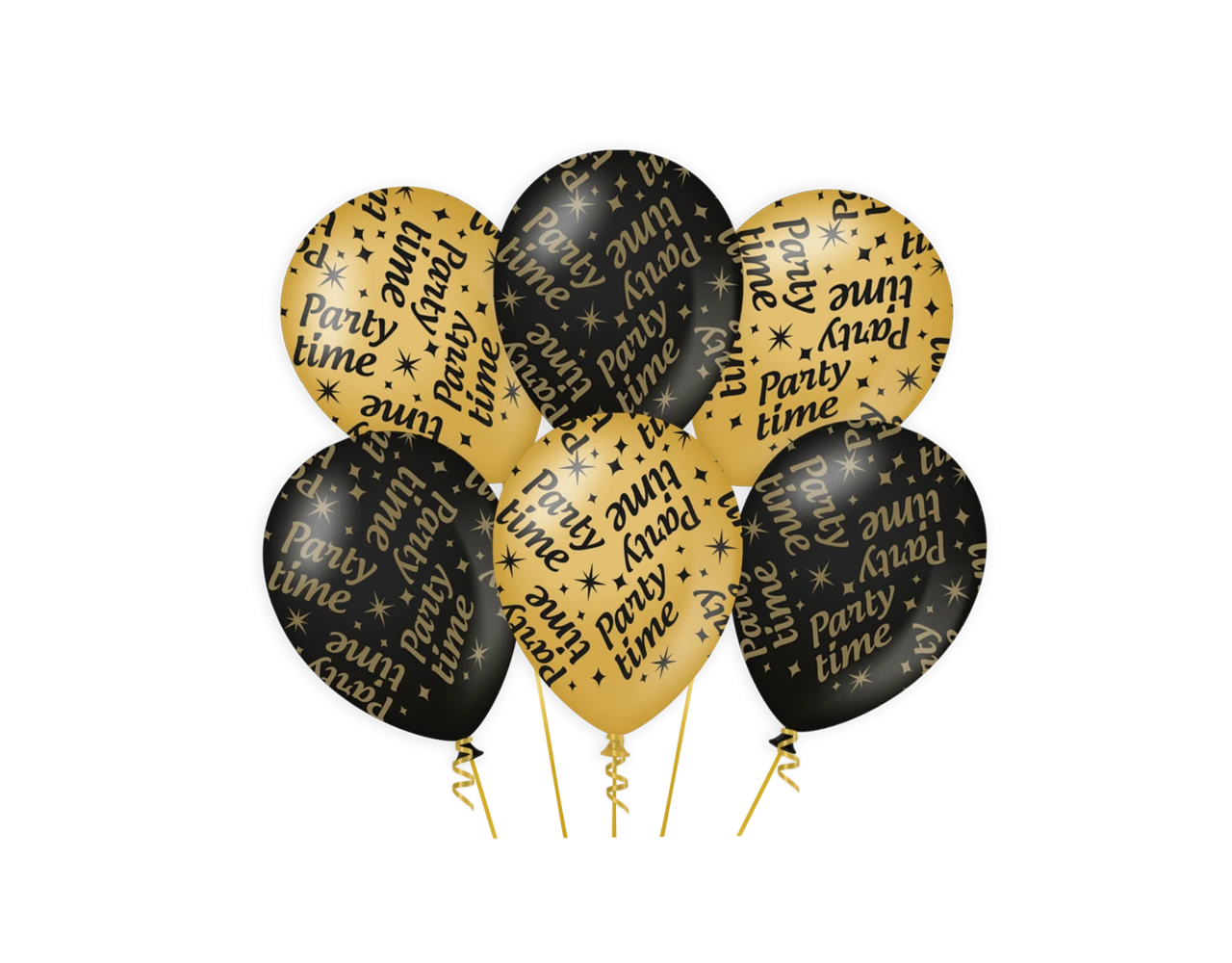 Ballonnen Party Time Goud Zwart 30cm 6st