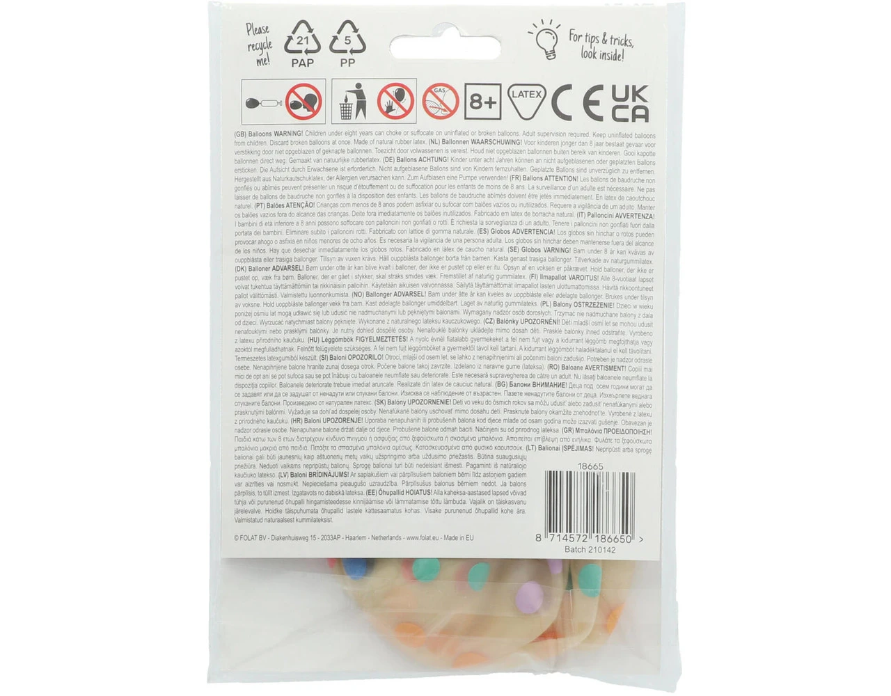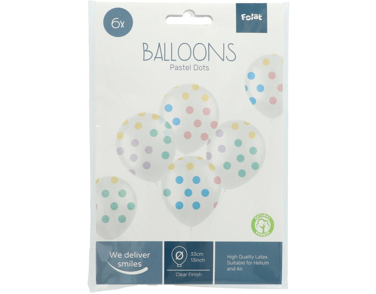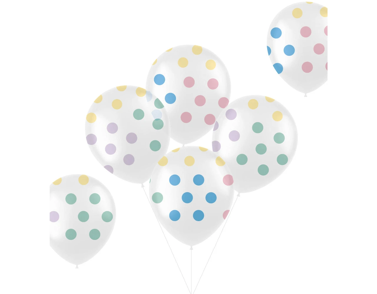 Ballonnen Pastel Stippen Meerkleurig 33cm – 6 stuks. Inhoud: 6 latex ballonnen. Kleur: Meerkleurig. Bijvoorbeeld te gebruiken tijdens de volgende feestgelegenheid/feestgelegenheden: Verjaardag en Kinderfeestje. Elke ballon is 13 inch/33 cm. Het artikel is gemaakt van latex.