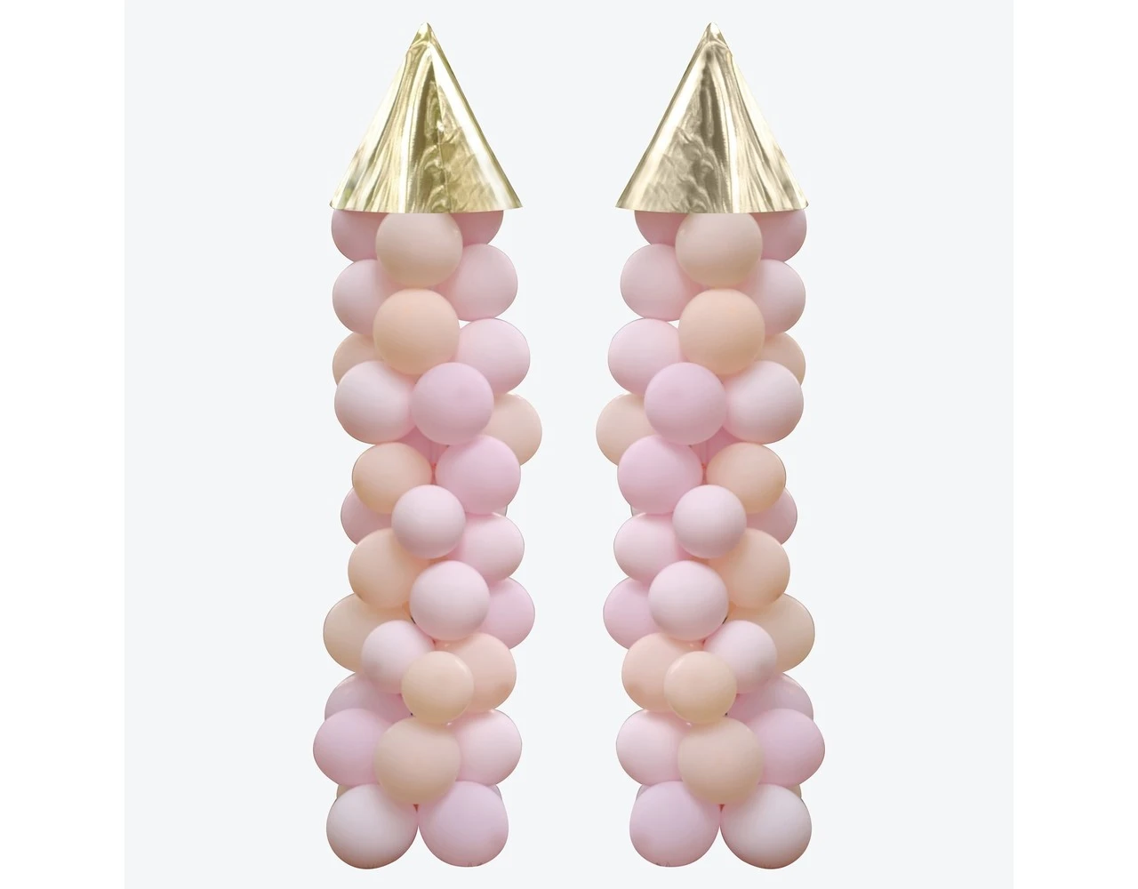 Met prachtige tinten roze ballonnen en goud glinsterende torentjes is deze onvergetelijke ballonboog een must-have voor je prinsessenfeest.