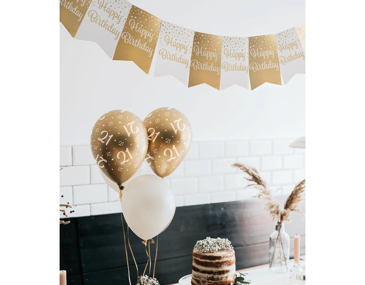 Verpakkingsinhoud: Party vlagbanner goud / wit – 16