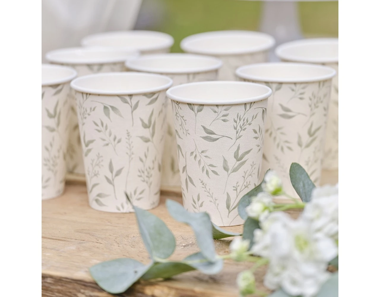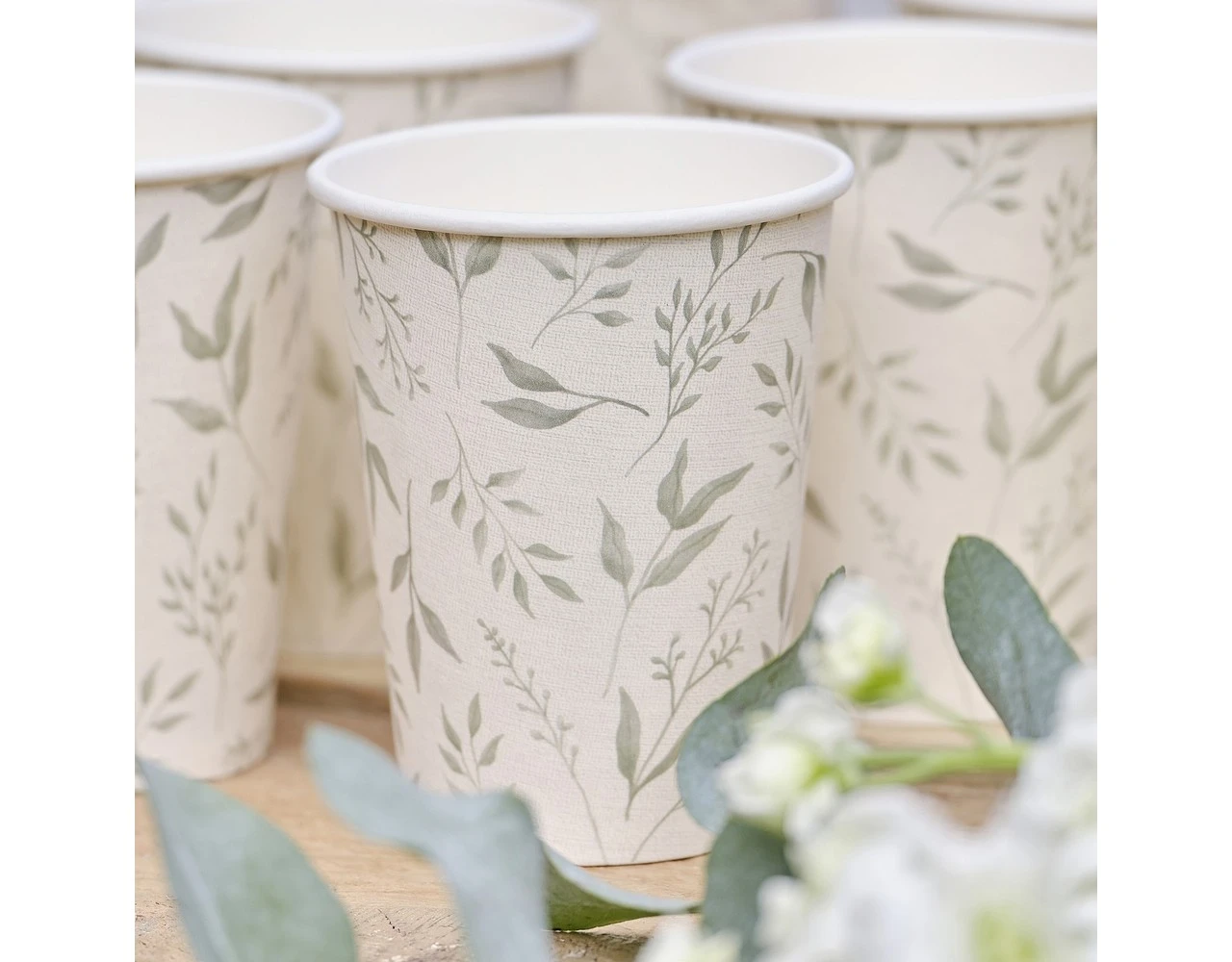 Breng een botanische sfeer in je doopservies met deze prachtige papieren bekers.