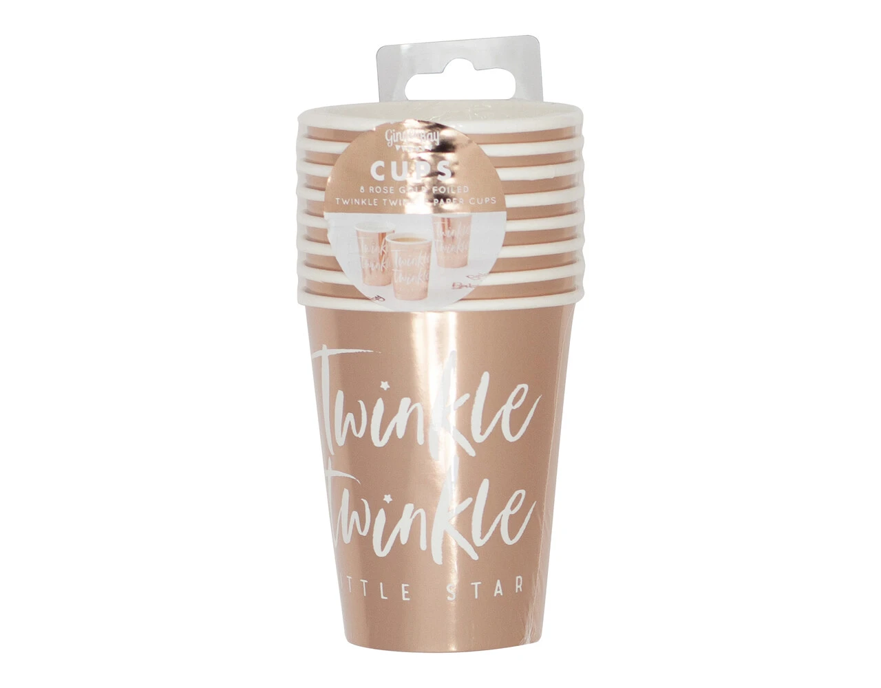 Onze prachtige ‘Twinkle Twinkle’ roségouden feestbekers van foliepapier zullen er prachtig uitzien bij elke babyshower en passen bij elk thema. De elegante roségouden foliebeker met wit opschrift zal schitteren in de kamer voor een perfect babyshowerfeest.