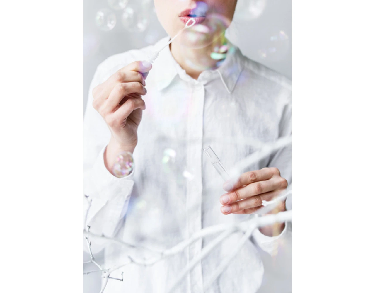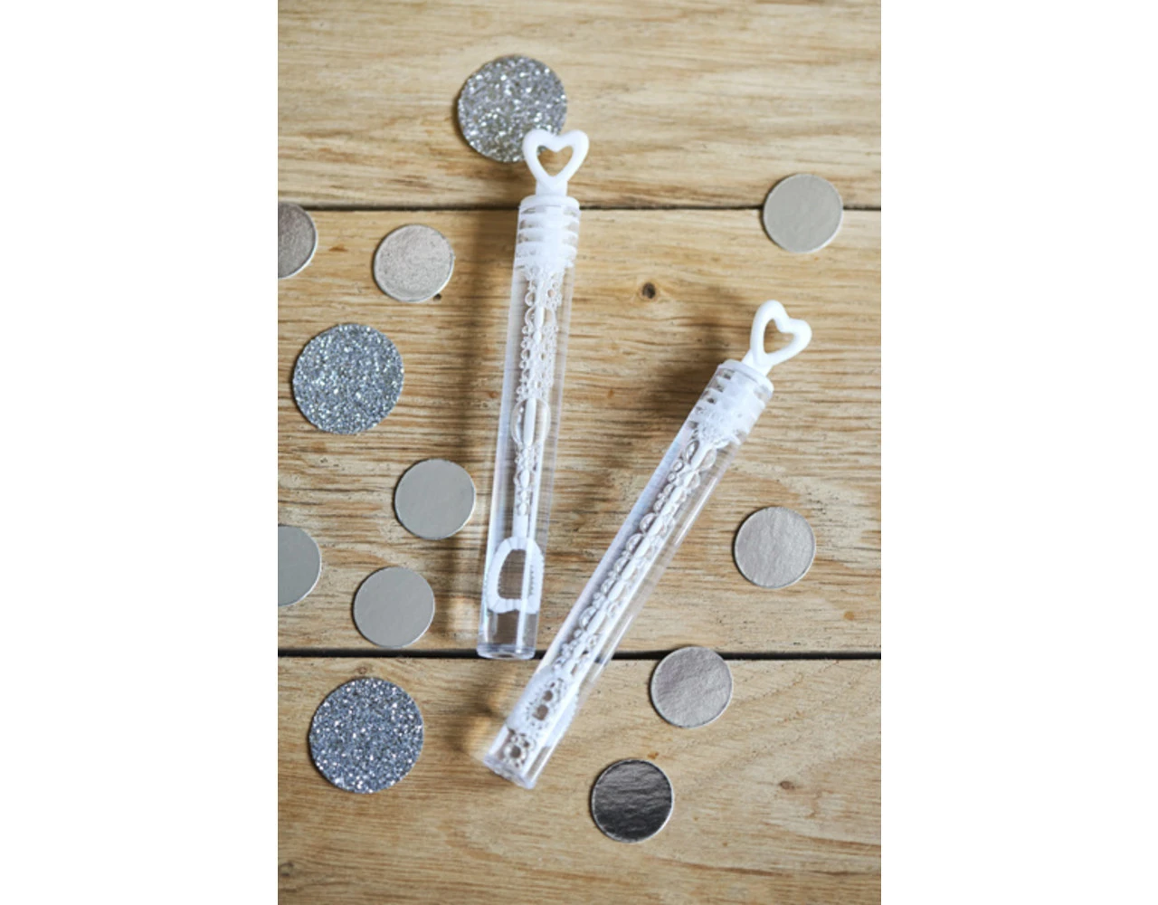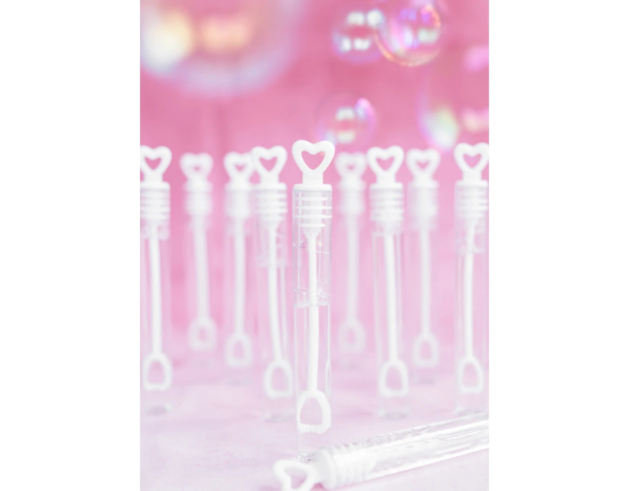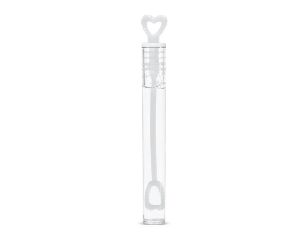 Zeepbellen Hart, witte flesjes met een hartje, bevatten zeepbellenvloeistof.