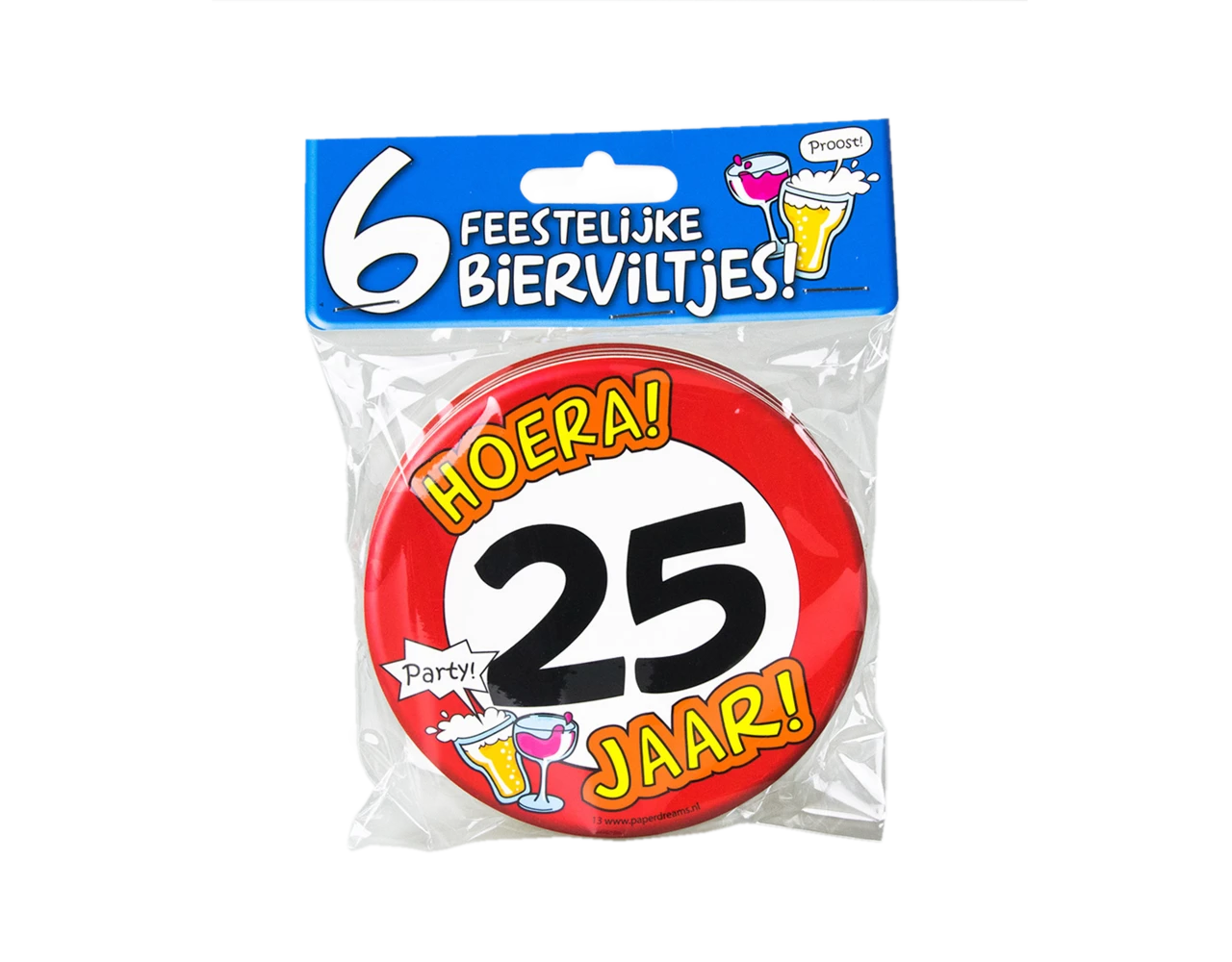 Verpakkingsinhoud: Bierviltjes 25 Jaar 12,5cm 6st