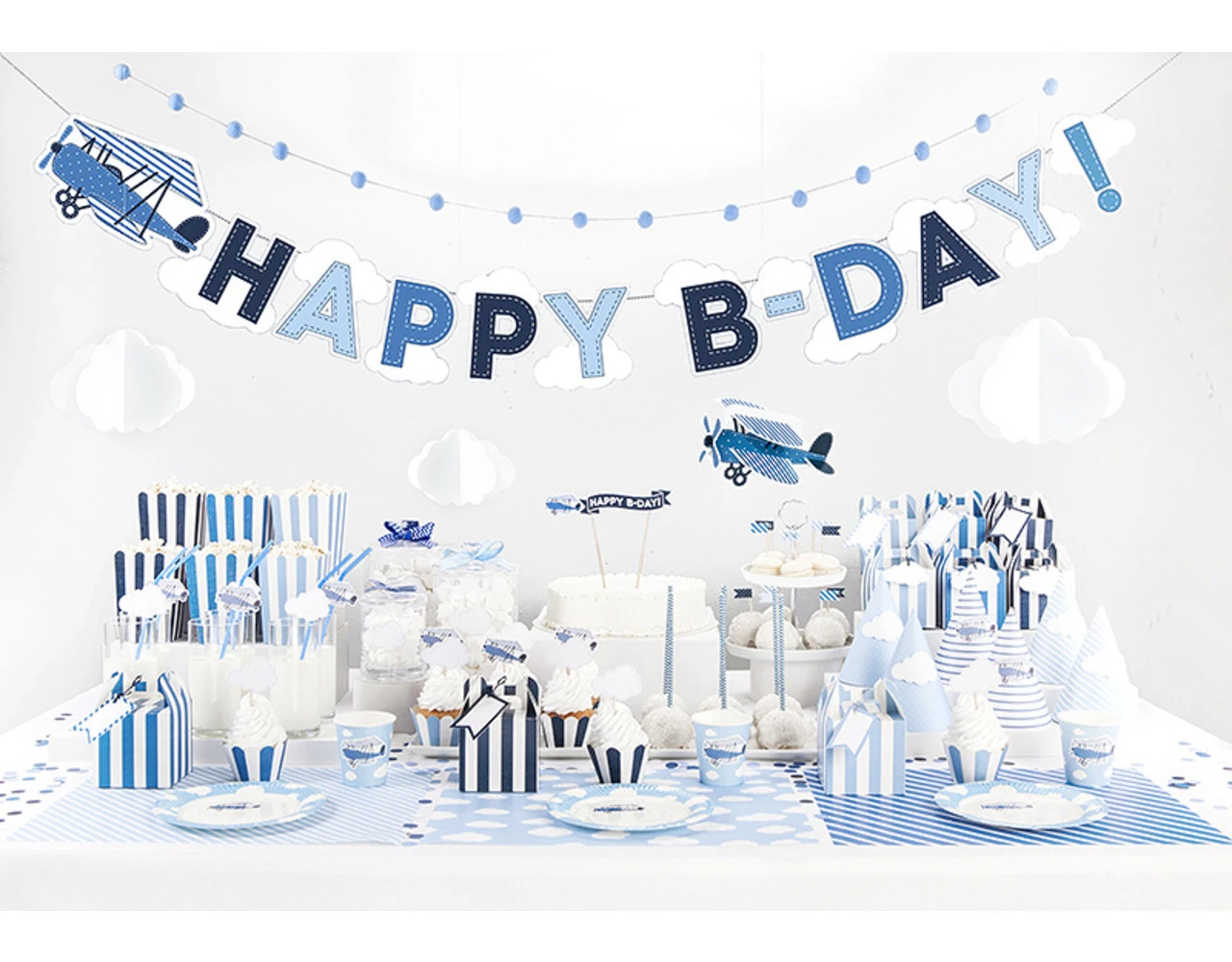 Sterke Ballonnen Wolken, Pastel Korenbloemblauw, met witte vijfzijdige opdruk, diameter 30 centimeter.