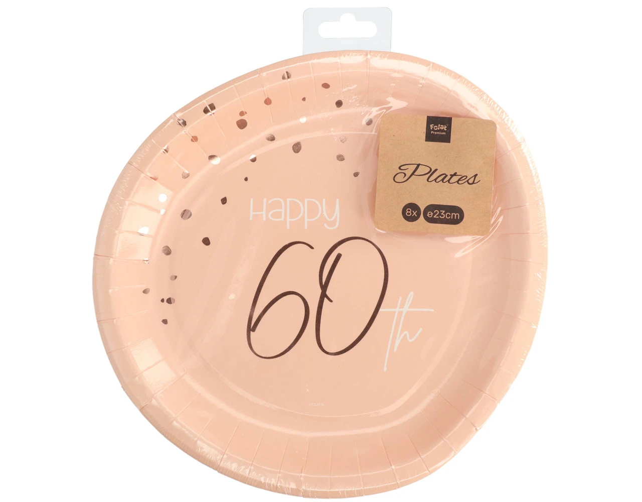 Borden Elegant Lush Blush 60 Jaar 23cm – 8 stuks. Inhoud: 8 borden van 23cm. Kleur: Roze. Bijvoorbeeld te gebruiken tijdens de volgende feestgelegenheid/feestgelegenheden: Verjaardag, Jubileum. Een bord heeft een diameter van 23 cm. Het artikel is gemaakt van papier.
