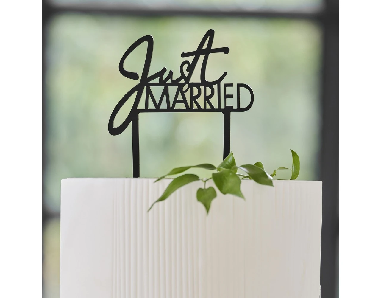 Deze moderne ‘Just Married’ taarttopper is de perfecte finishing touch voor uw bruidstaart.