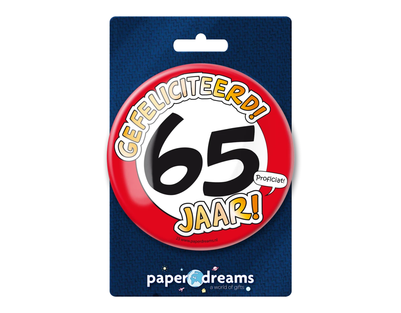 Verpakkingsinhoud: Button 65 jaar Verkeersbord 10,2cm