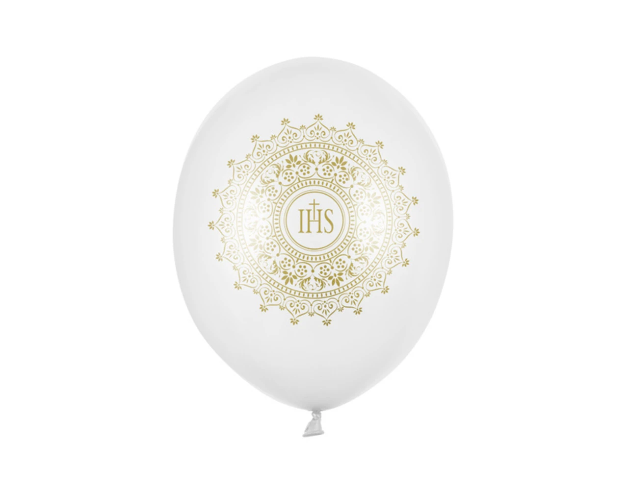 Sterke Ballonnen IHS, Metallic Pure White met goud, dubbelzijdige bedrukking, diameter 30 centimeter.
