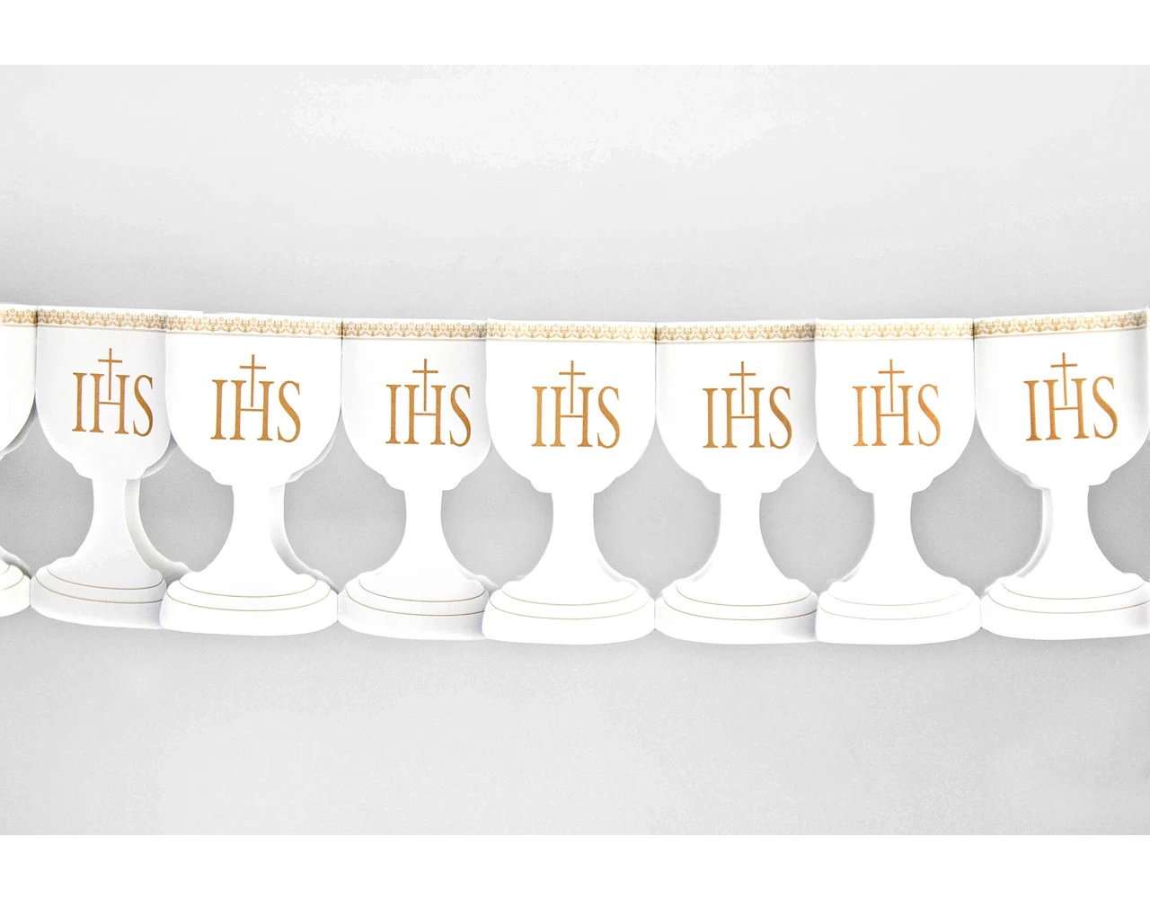Inhoud: Papier guirlande IHS kelk, wit, afmetingen 17 cm x 3 meter.