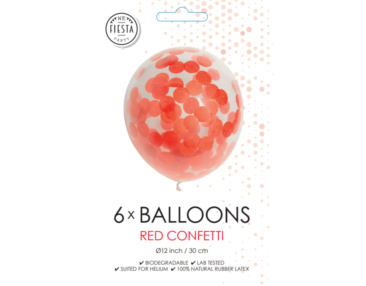 Verpakkingsinhoud: Confetti Ballonnen Rood 30cm 6st