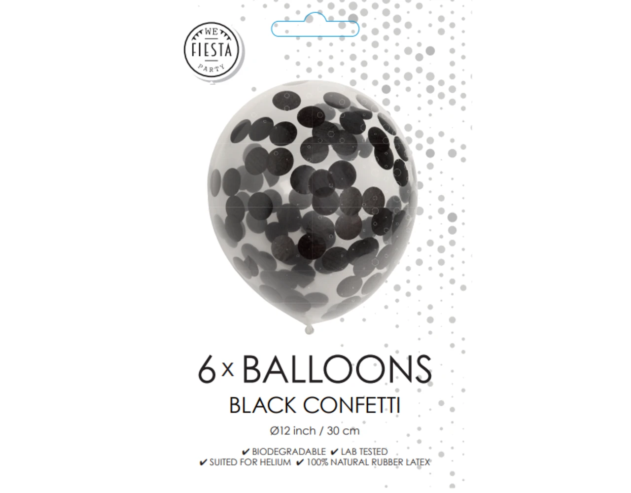Verpakkingsinhoud: Confetti Ballonnen Zwart 30cm 6st