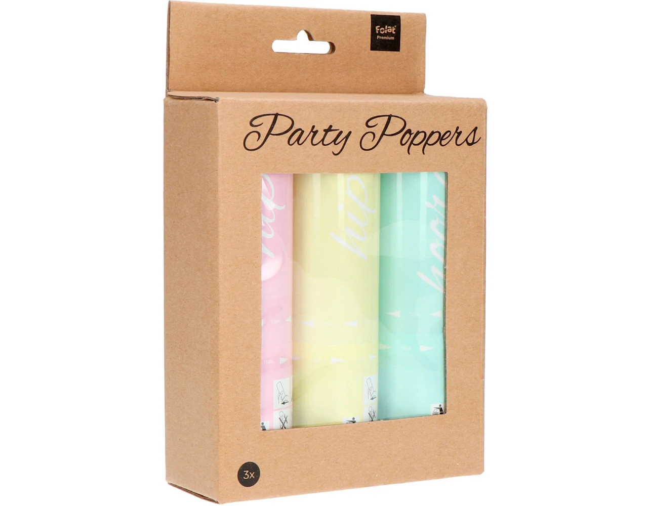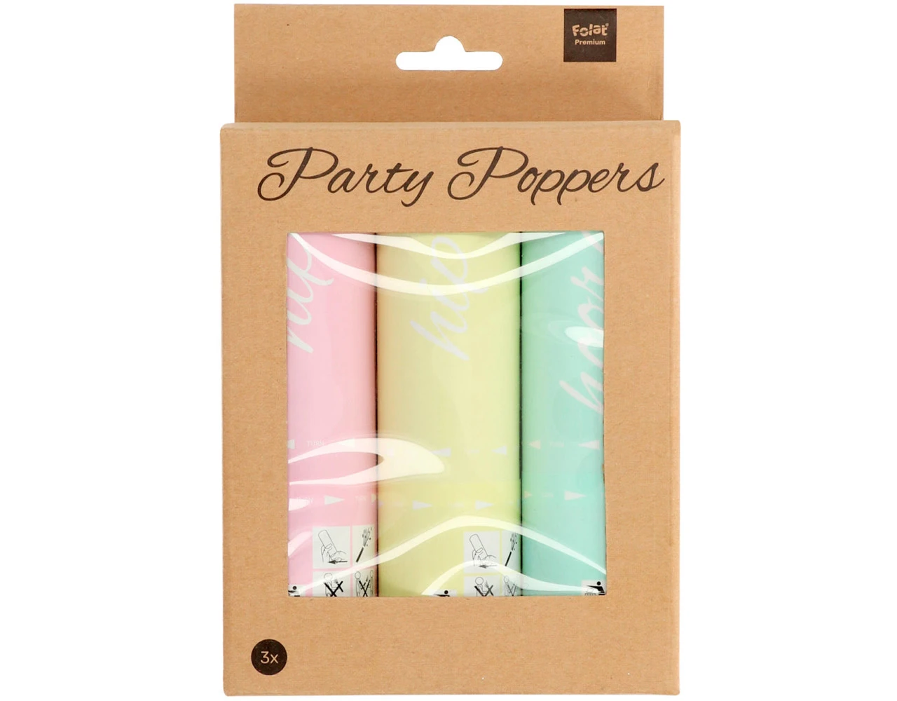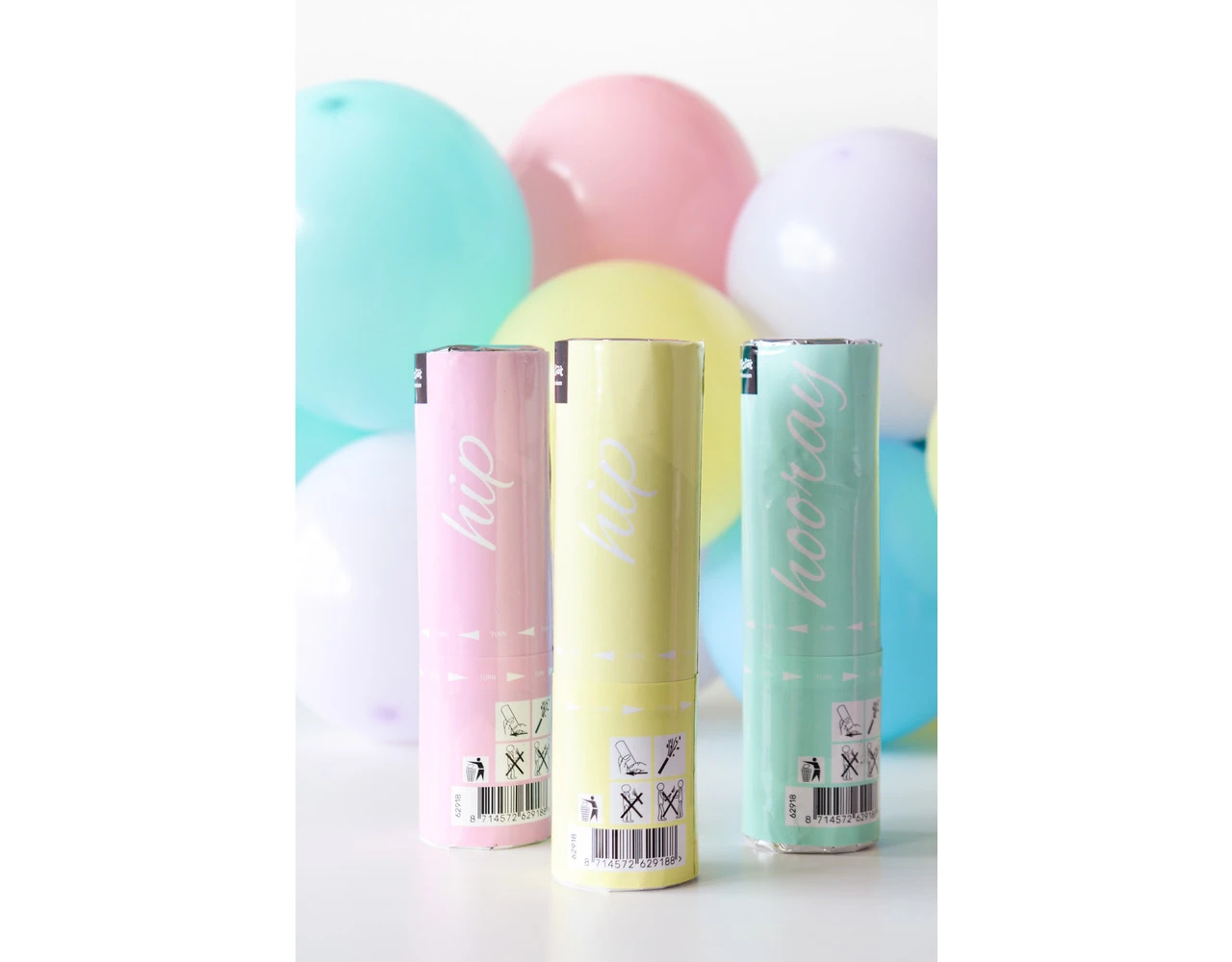 Set met 3 Confetti Kanonnen Pastel – 15cm. Inhoud: 3 confetti kanonnen. Kleur: Meerkleurig. Bijvoorbeeld te gebruiken tijdens de volgende feestgelegenheid/feestgelegenheden: verjaardag, kinderfeestje of jubileum. Eén kanon is 15 cm lang. Het artikel bestaat uit een confetti mix in de kleuren pastel roze, mintgroen en geel. De confetti is gemaakt van papier en folie.
