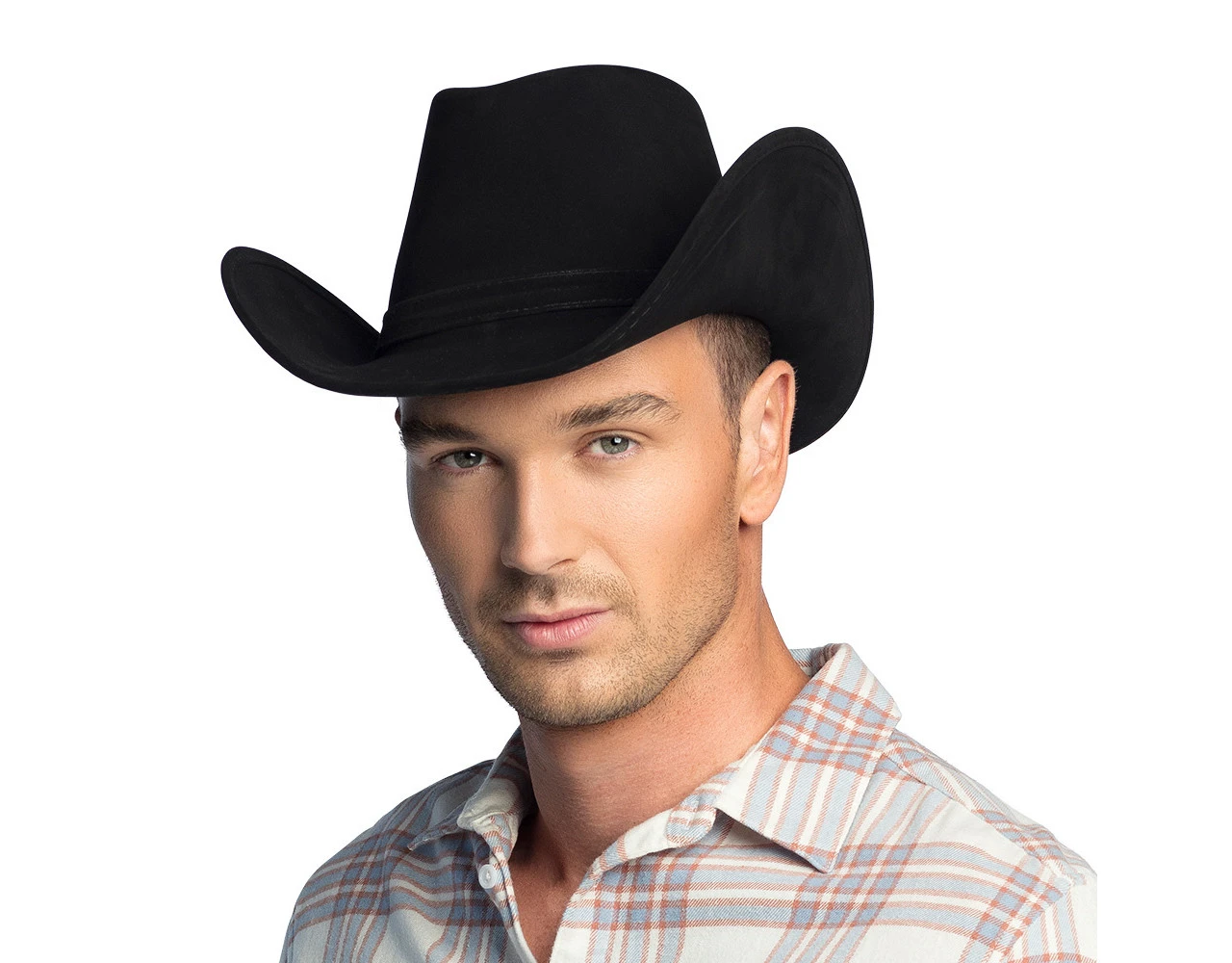 Verpakkingsinhoud: Cowboyhoed Zwart Leatherlook Deluxe