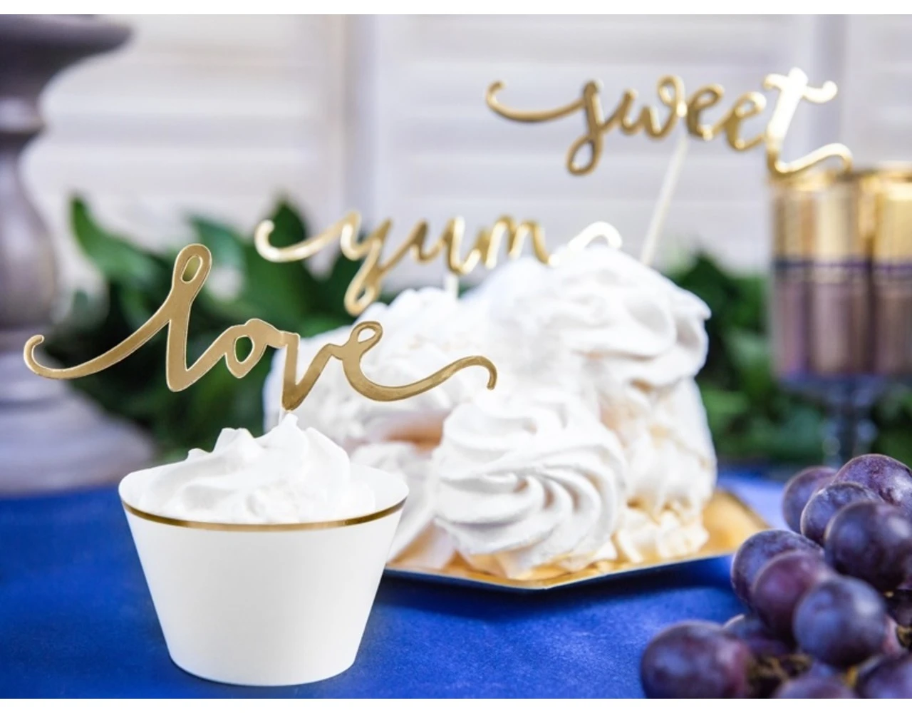 Verpakkingsinhoud: Cupcake Toppers Goud Sweet Love Yum 13cm 6st