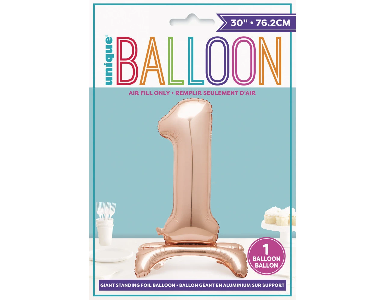 Verpakkingsinhoud: Folie Ballon Cijfer 1 Rosé Goud met standaard 76cm