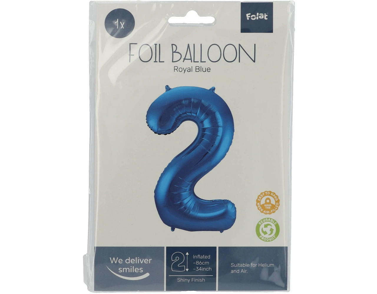 Blauwe Folieballon Cijfer 2 – 86cm. Inhoud: 1 folieballon. Kleur: Blauw. Bijvoorbeeld te gebruiken tijdens de volgende feestgelegenheid/feestgelegenheden: Verjaardag, Jubileum en Kinderfeestje. Deze folieballon is 34 inch/86 cm. Het artikel is gemaakt van folie.