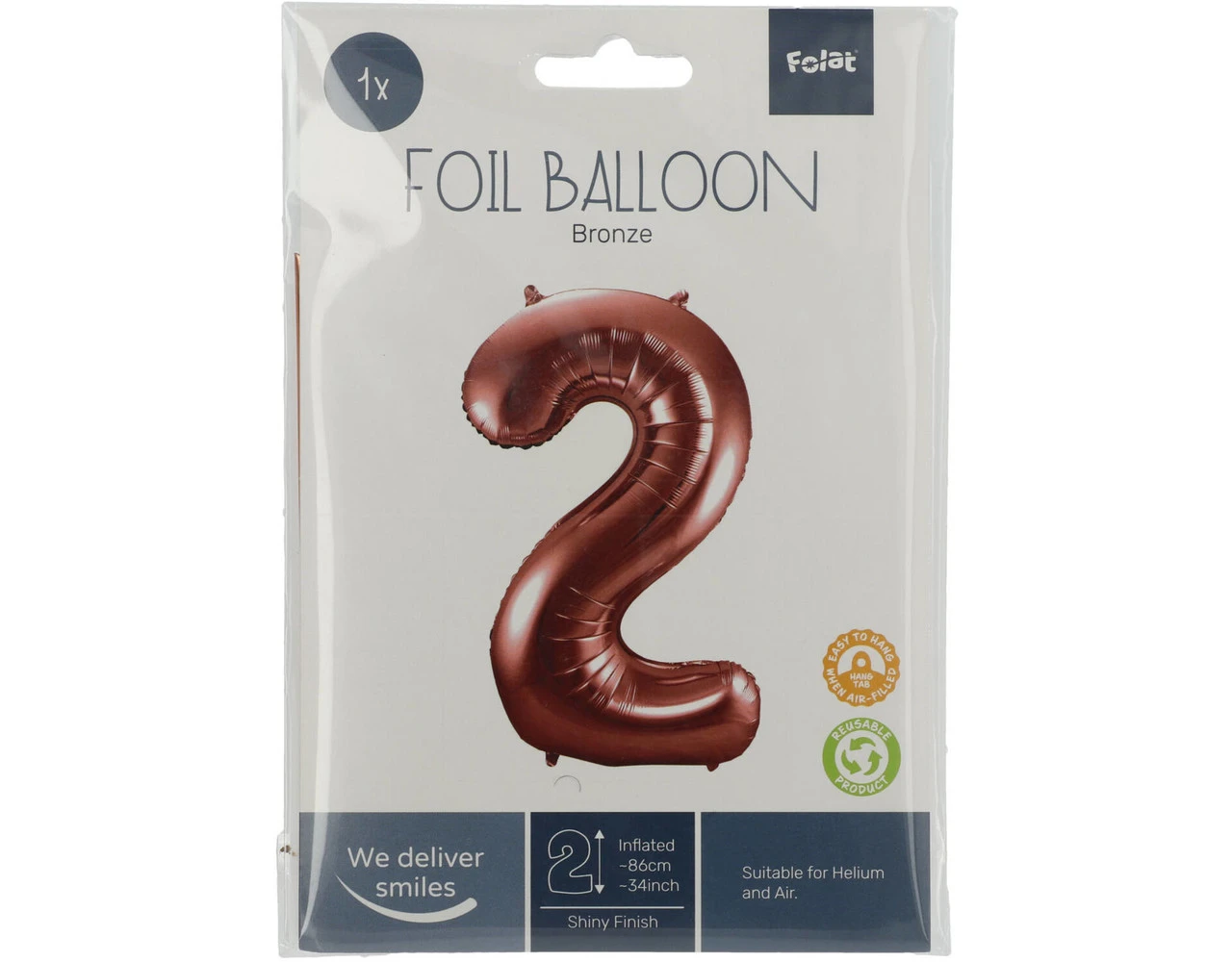 Folieballon Cijfer 2 Brons – 86 cm. Inhoud: 1 folieballon. Kleur: Brons. Bijvoorbeeld te gebruiken tijdens de volgende feestgelegenheid/feestgelegenheden: Verjaardag, Kinderfeestje en Jubileum. Deze folieballon is 34 inch/86 cm. Het artikel is gemaakt van folie.
