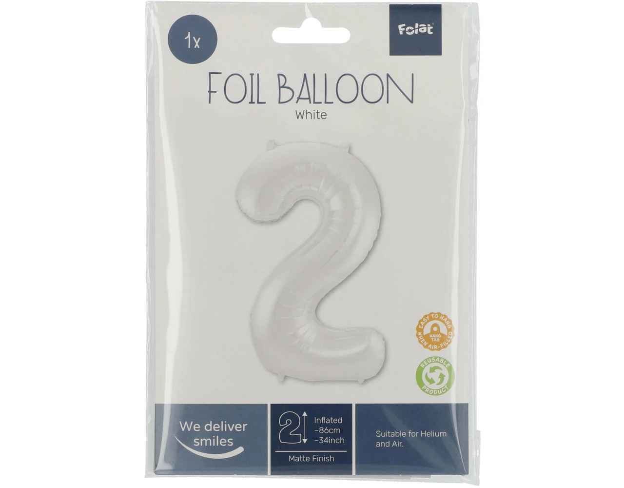 Folieballon Cijfer 2 Wit Metallic Mat – 86 cm. Inhoud: 1 folieballon. Kleur: Wit. Bijvoorbeeld te gebruiken tijdens de volgende feestgelegenheid/feestgelegenheden: Verjaardag, Kinderfeestje en Jubileum. Deze folieballon is 34 inch/86 cm. Het artikel is gemaakt van folie.