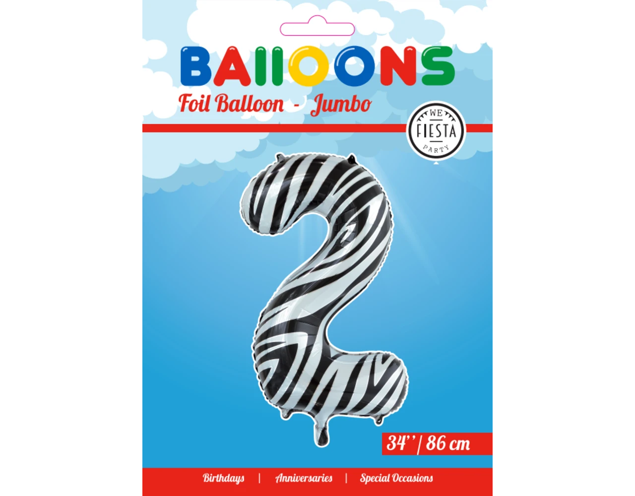 Verpakkingsinhoud: Folie Ballon Cijfer 2 Zebra XL 86cm leeg