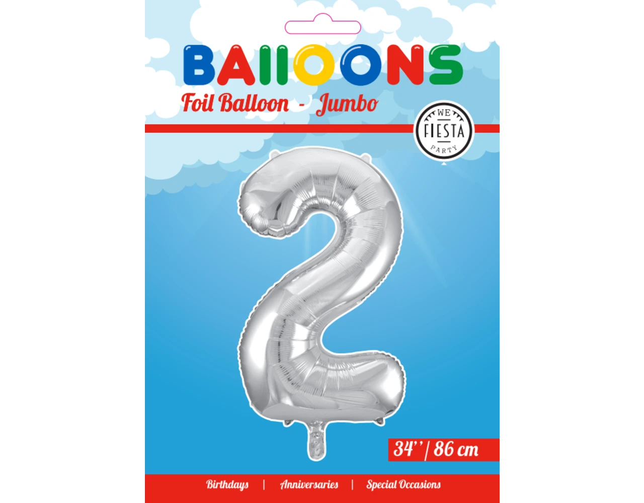 Verpakkingsinhoud: Folie Ballon Cijfer 2 Zilver XL 86cm leeg