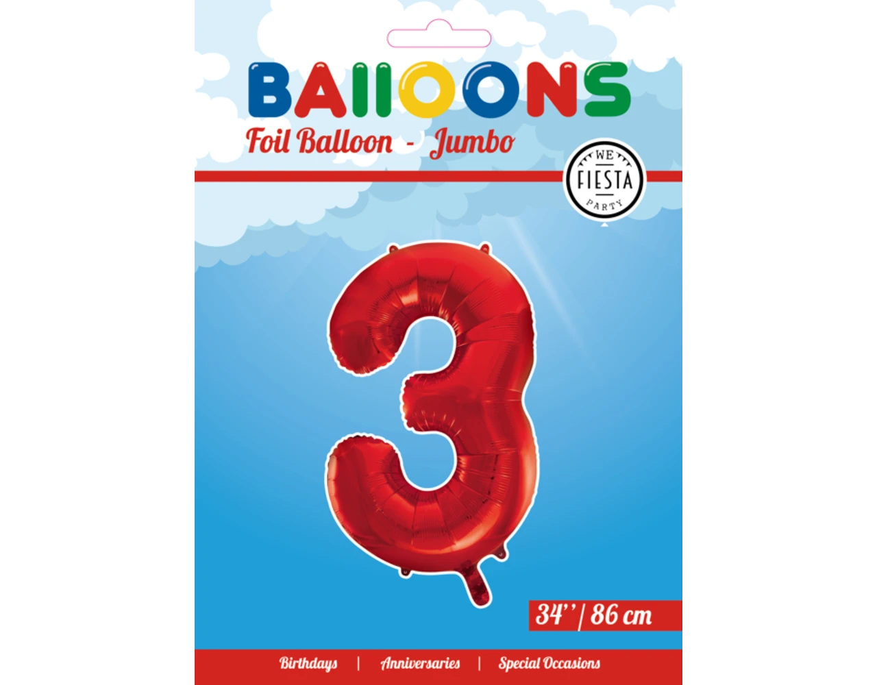 Verpakkingsinhoud: Folie Ballon Cijfer 3 Rood XL 86cm leeg