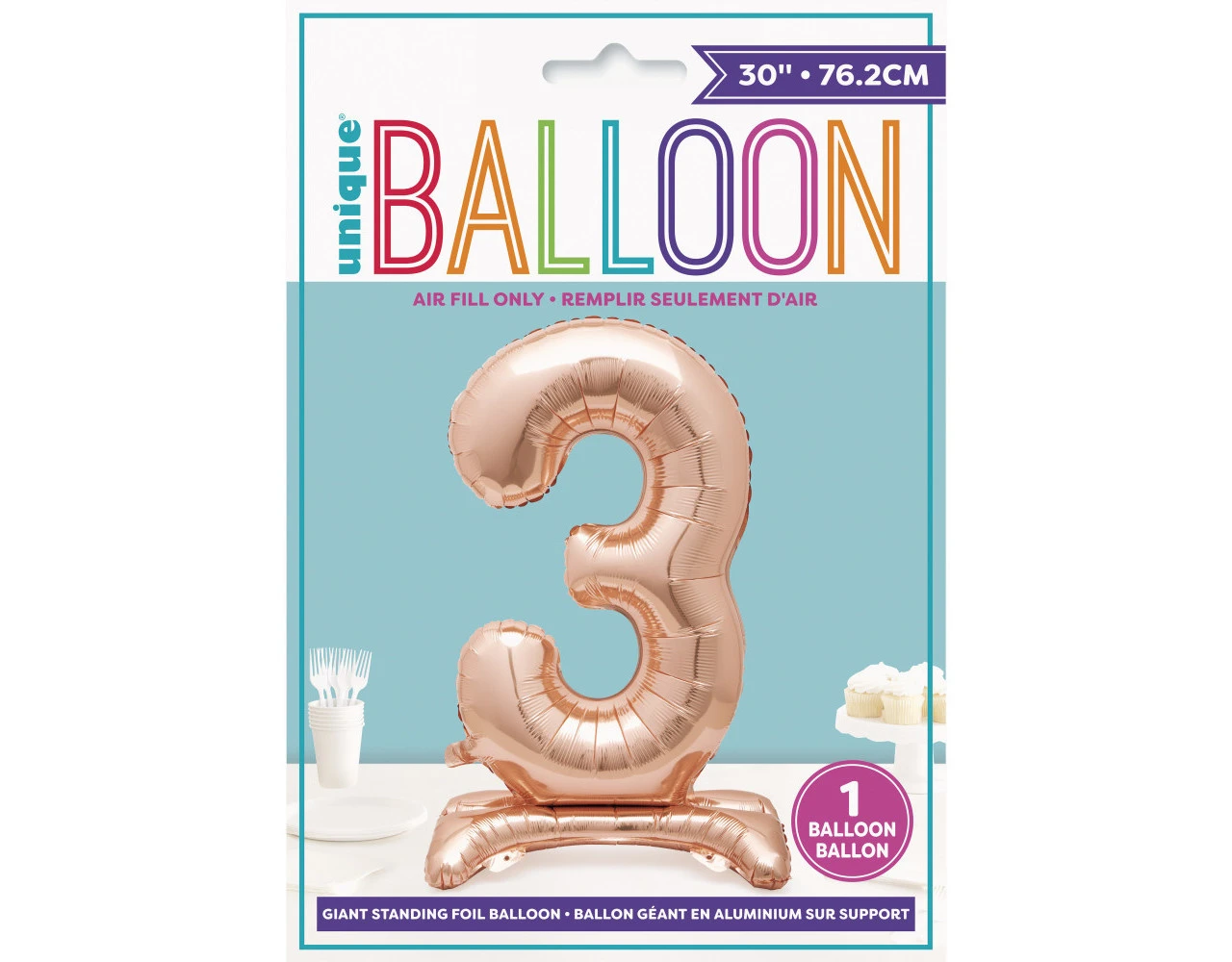 Verpakkingsinhoud: Folie Ballon Cijfer 3 Rosé Goud met standaard 76cm