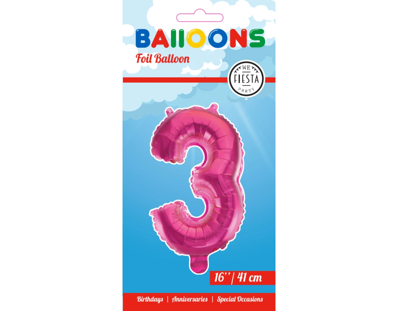 Verpakkingsinhoud: Folie Ballon Cijfer 3 Roze 41cm met Rietje