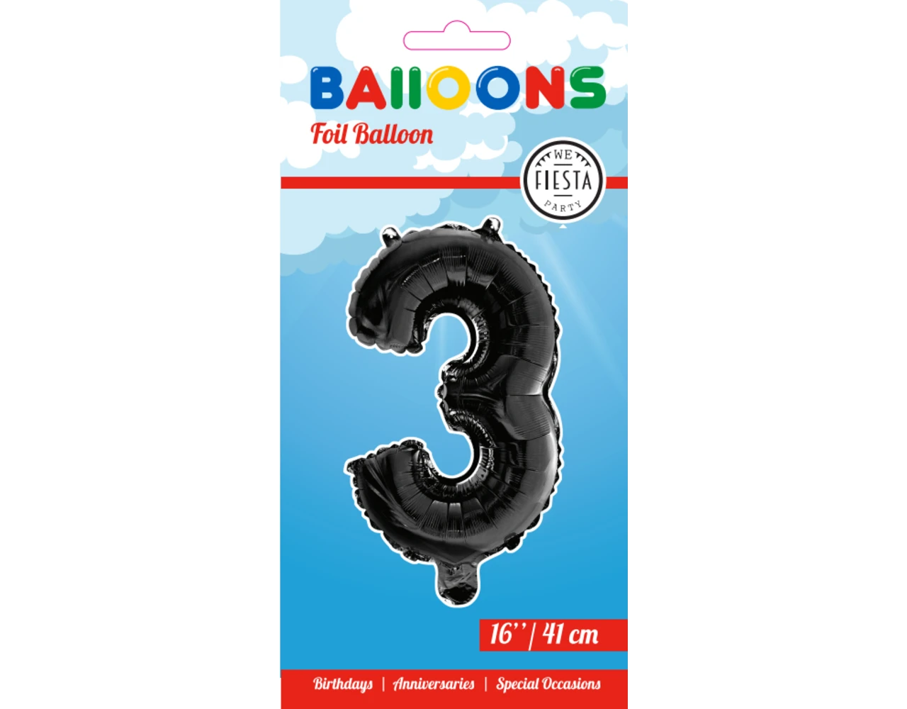 Verpakkingsinhoud: Folie Ballon Cijfer 3 Zwart 41cm met Rietje
