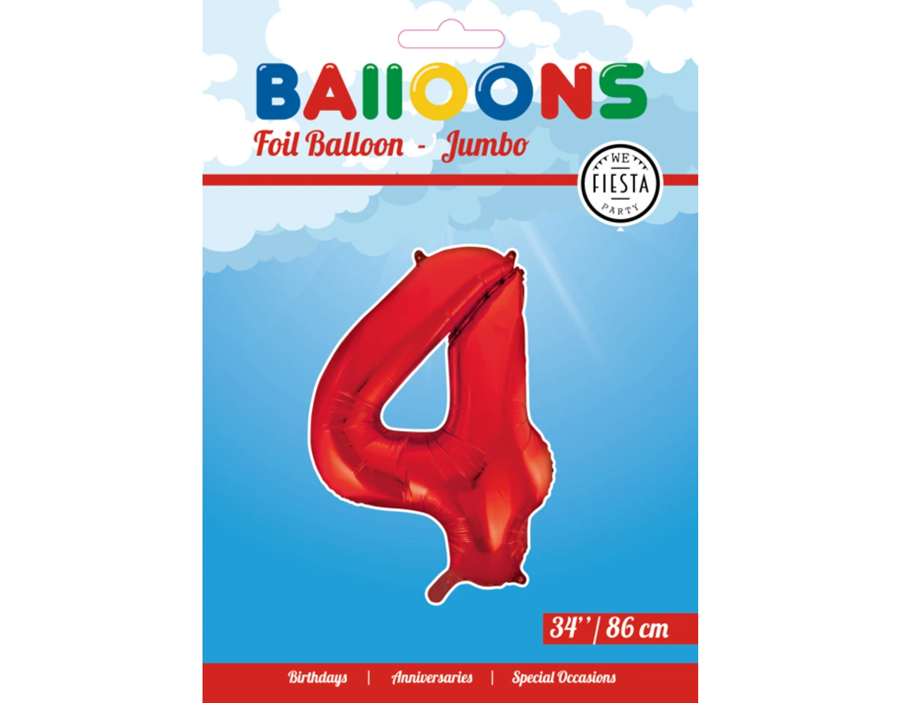 Verpakkingsinhoud: Folie Ballon Cijfer 4 Rood XL 86cm leeg