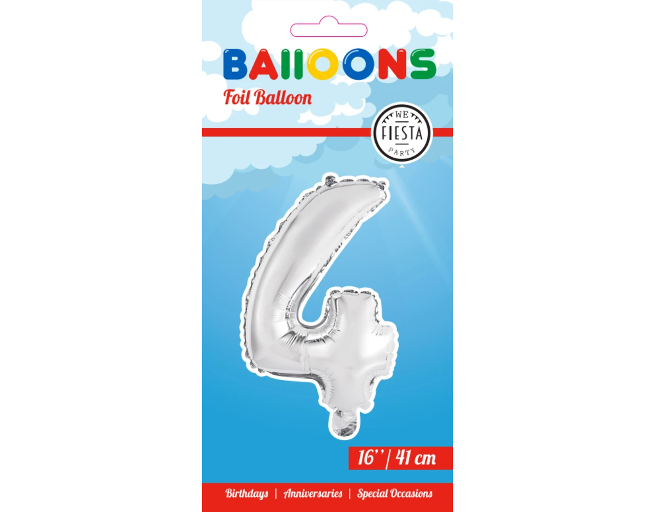 Verpakkingsinhoud: Folie Ballon Cijfer 4 Zilver 41cm met Rietje